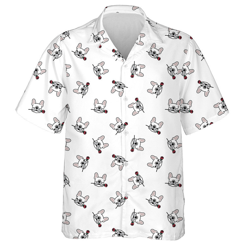 Cartoon Bulldog Valentine Rose Flower Background Hawaiian Shirt, Hawaiian Shirt Gift, Christmas Gift