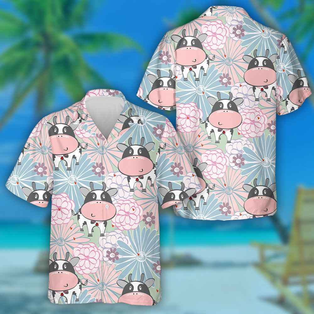 Cartoon Cow And Flower In Light Colors Hawaiian Shirt, Hawaiian Shirt Gift, Christmas Gift
