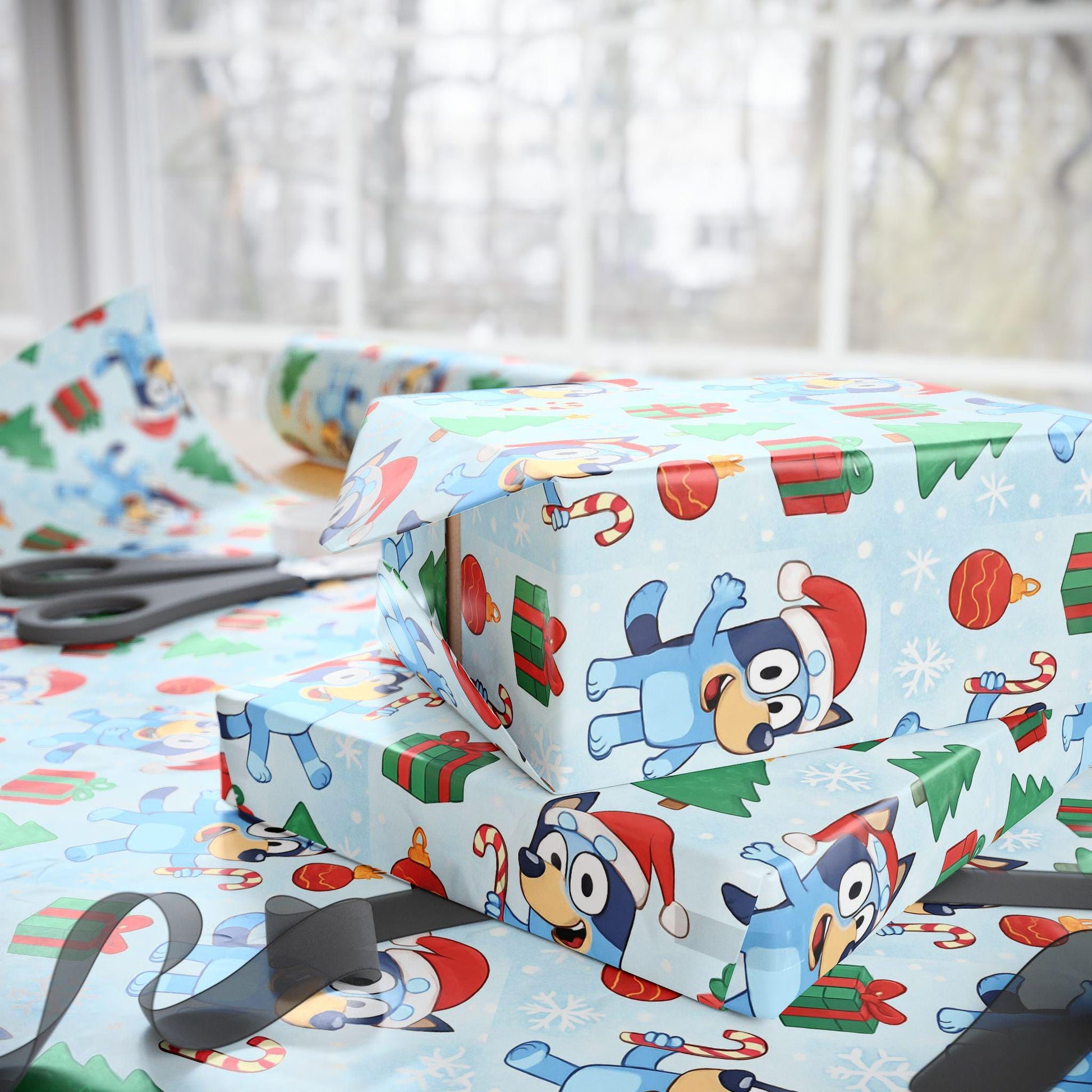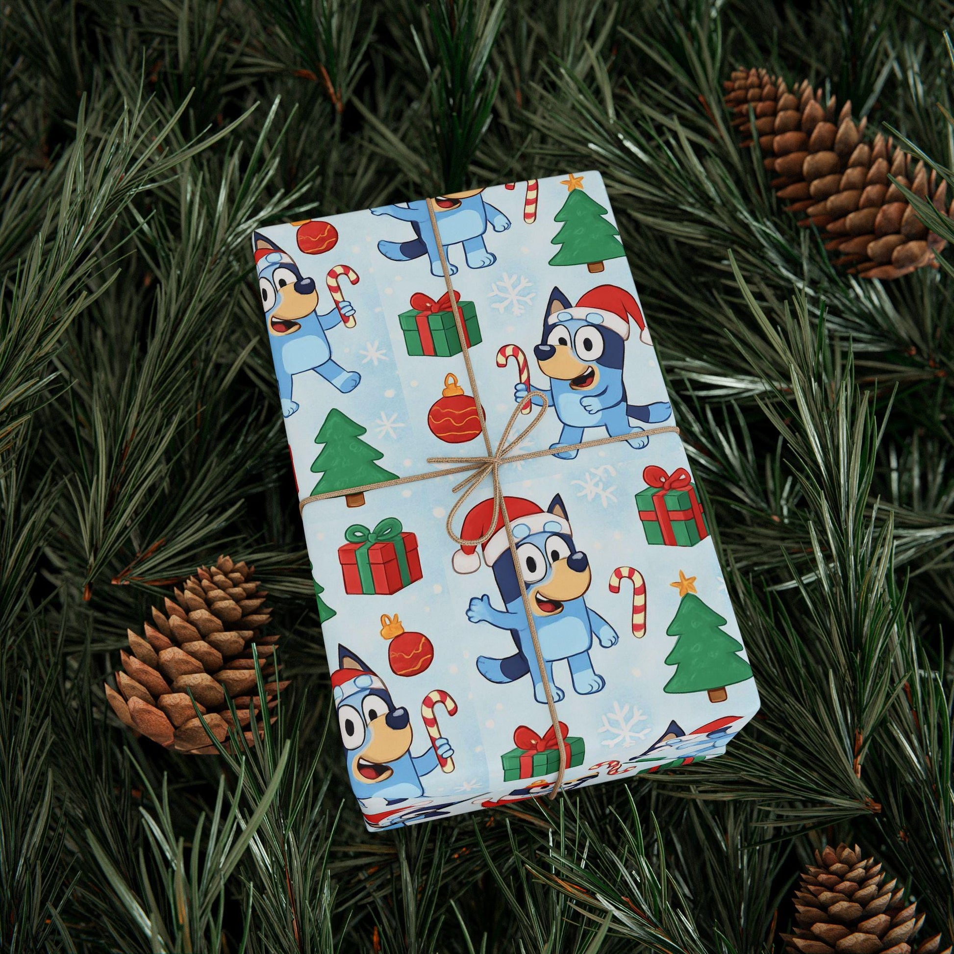 Cartoon Dog Christmas Wrapping Paper, Cute Holiday Gift Wrap with Santa Hat Dog, Festive Kids Party Gift Wrap Sheets