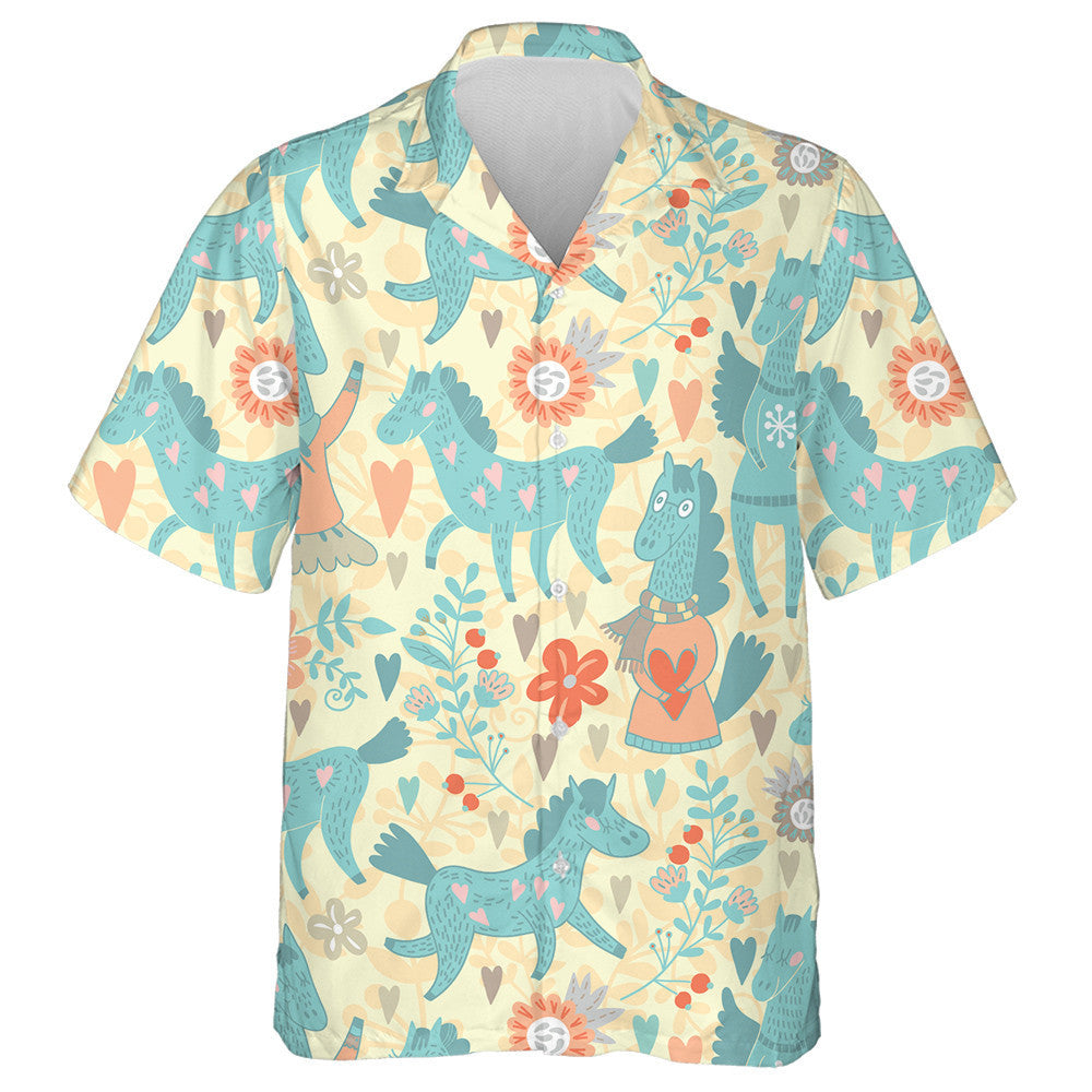 Cartoon Funny Horses In Cute Colors Hawaiian Shirt, Hawaiian For Gift