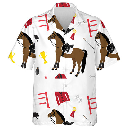 Cartoon Horse Riding Equipment Isolated On White Hawaiian Shirt, Hawaiian Shirt Gift, Christmas Gift