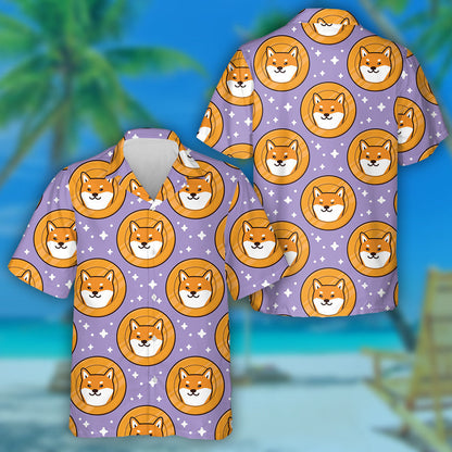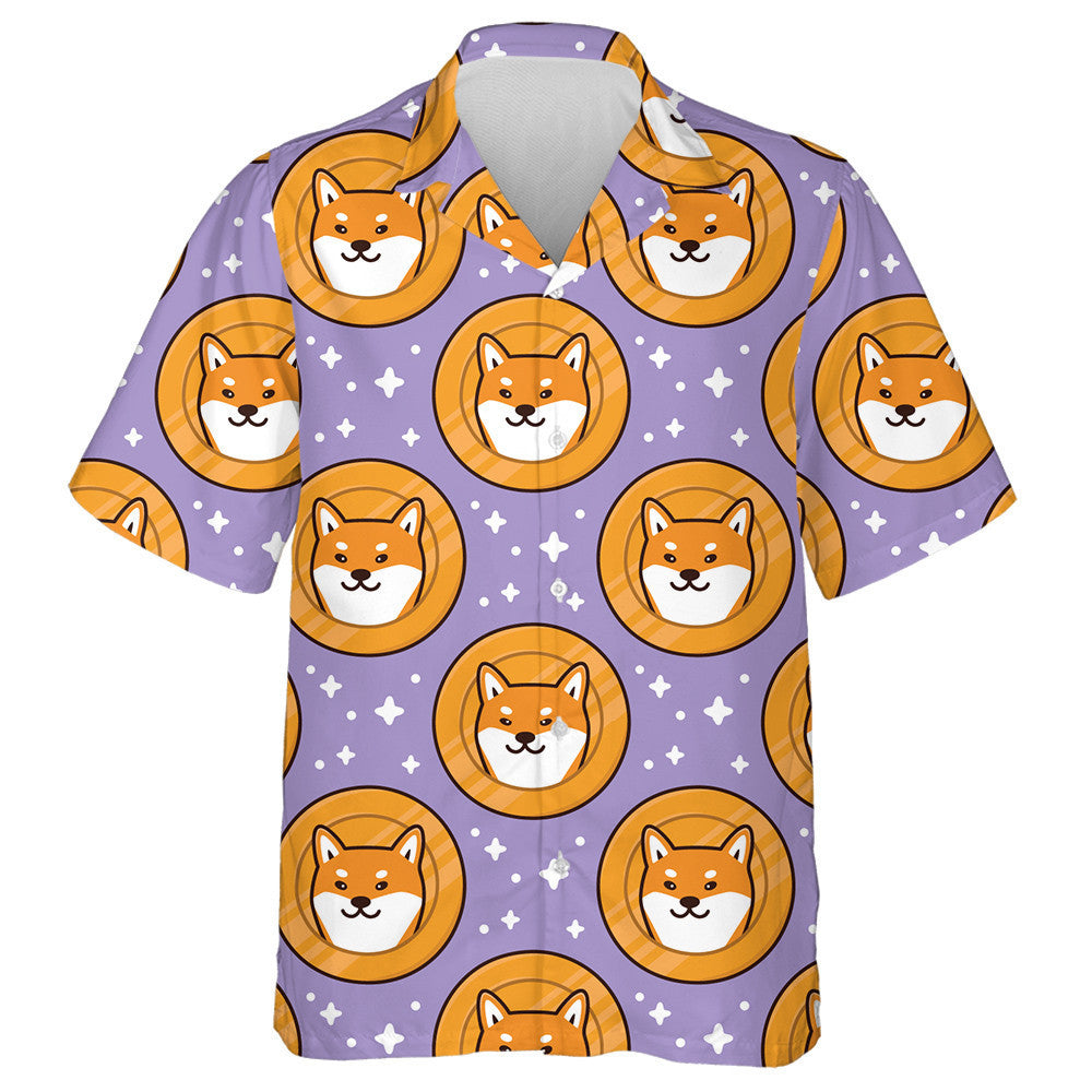 Cartoon Shiba Inu Dog On Coin Isolated Background Hawaiian Shirt, Hawaiian Shirt Gift, Christmas Gift
