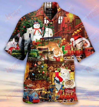 Cats With Toys Train Short Hawaiian Shirt Summer Tropical Shirts Tactical Hawaiian Shirt Funny Hawaiian Shirts, Hawaiian Shirt Gift, Christmas Gift