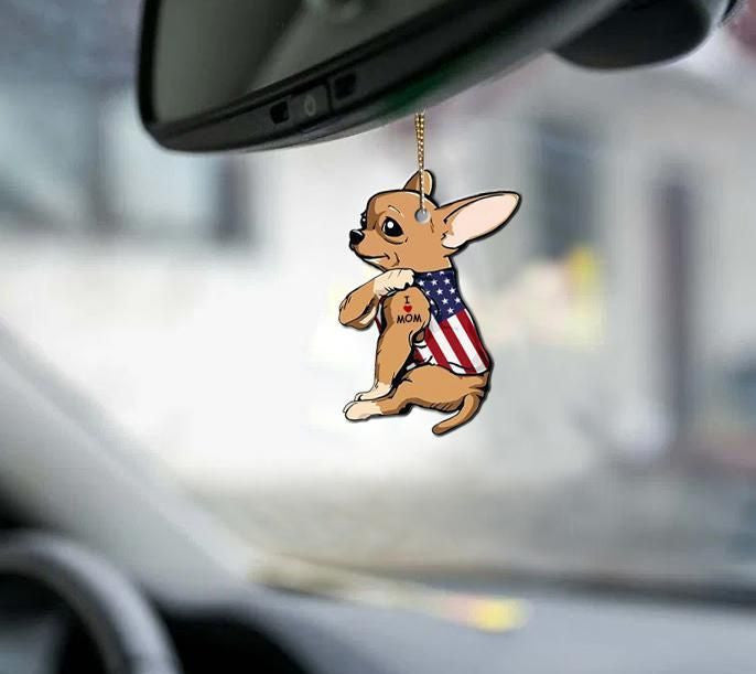 Chihuahua I love mom muscle American flag shirt 2-Sided Mica Custom Shaped Ornament, Happy Christmas Ornament, Christmas Gift, Christmas Decoration