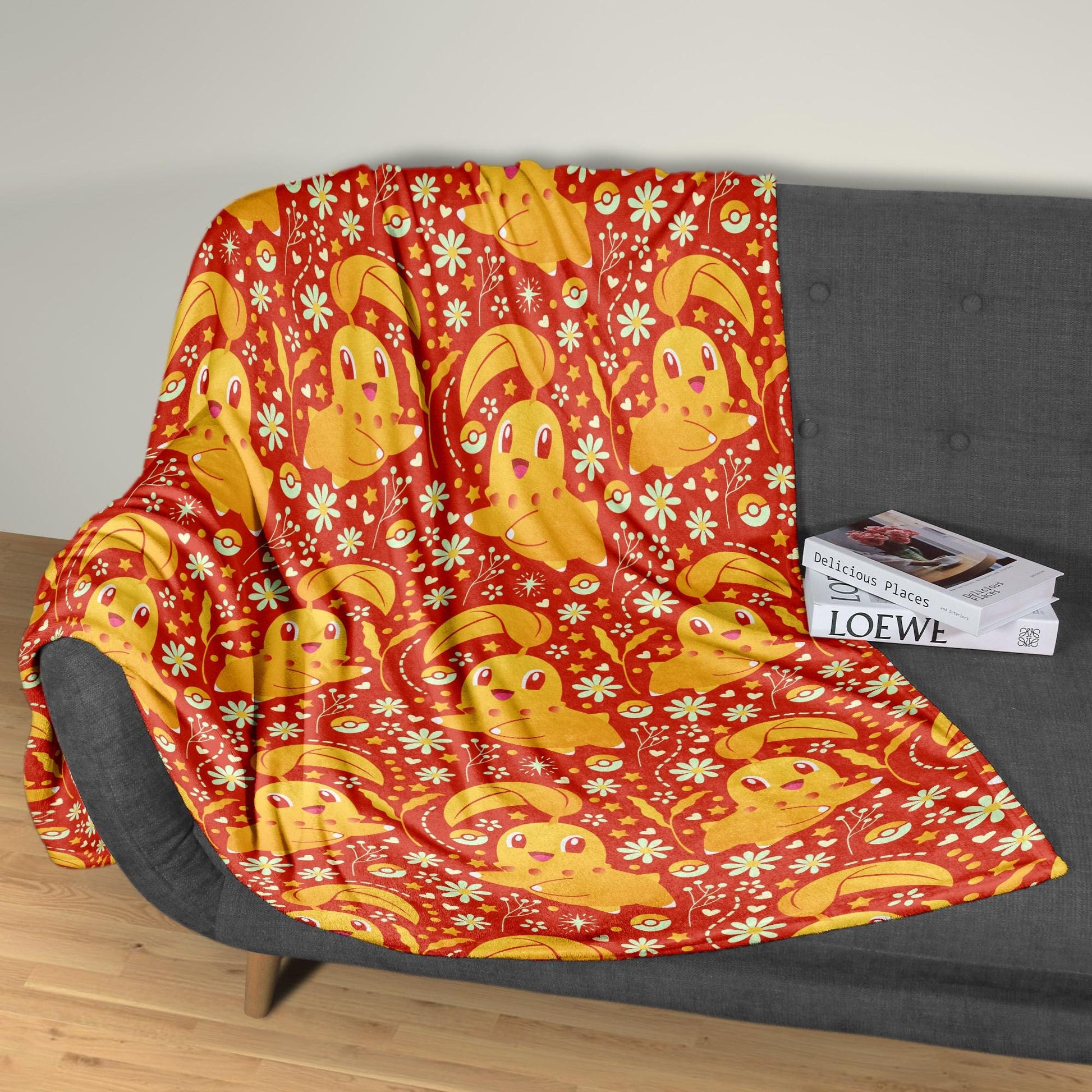 Chikorita Fleece Blanket Home Decor Throw Blanket Bedroom Decor Baby Blanket Cute Chikorita Blanket Gifts