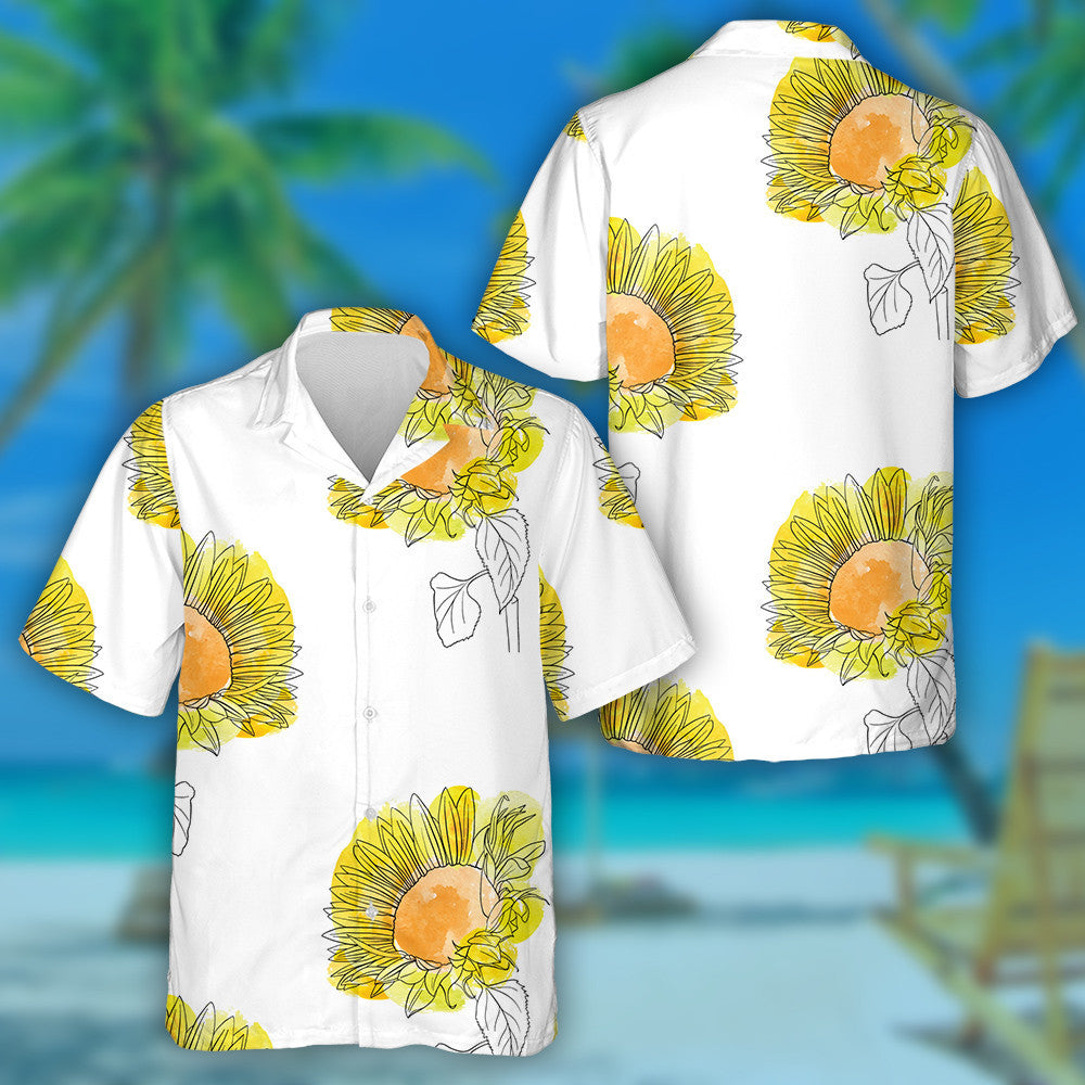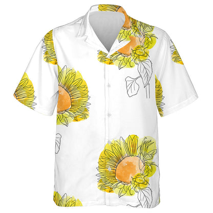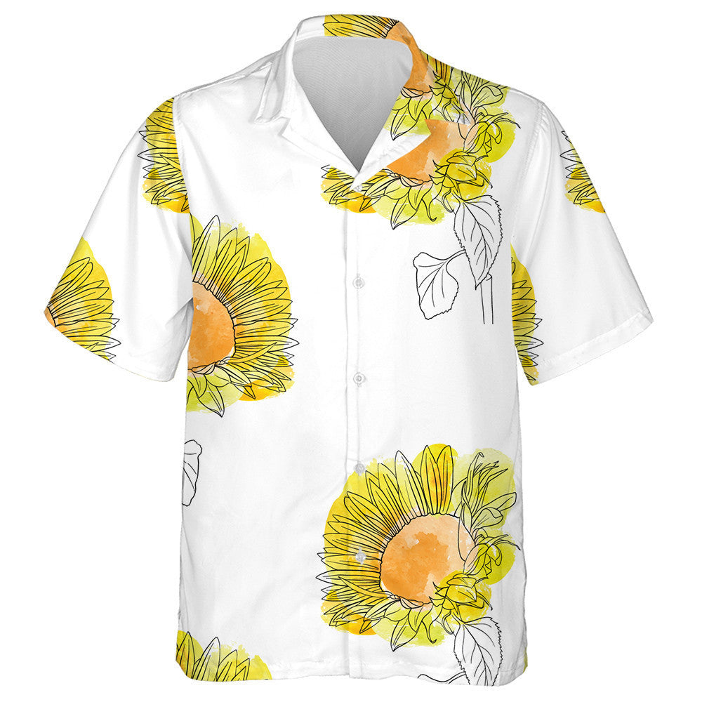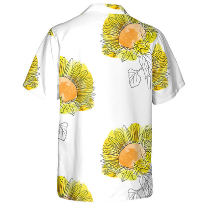 Childish Drawing Sunflowers Floral Background With Watercolor Spots Hawaiian Shirt, Hawaiian Shirt Gift, Christmas Gift