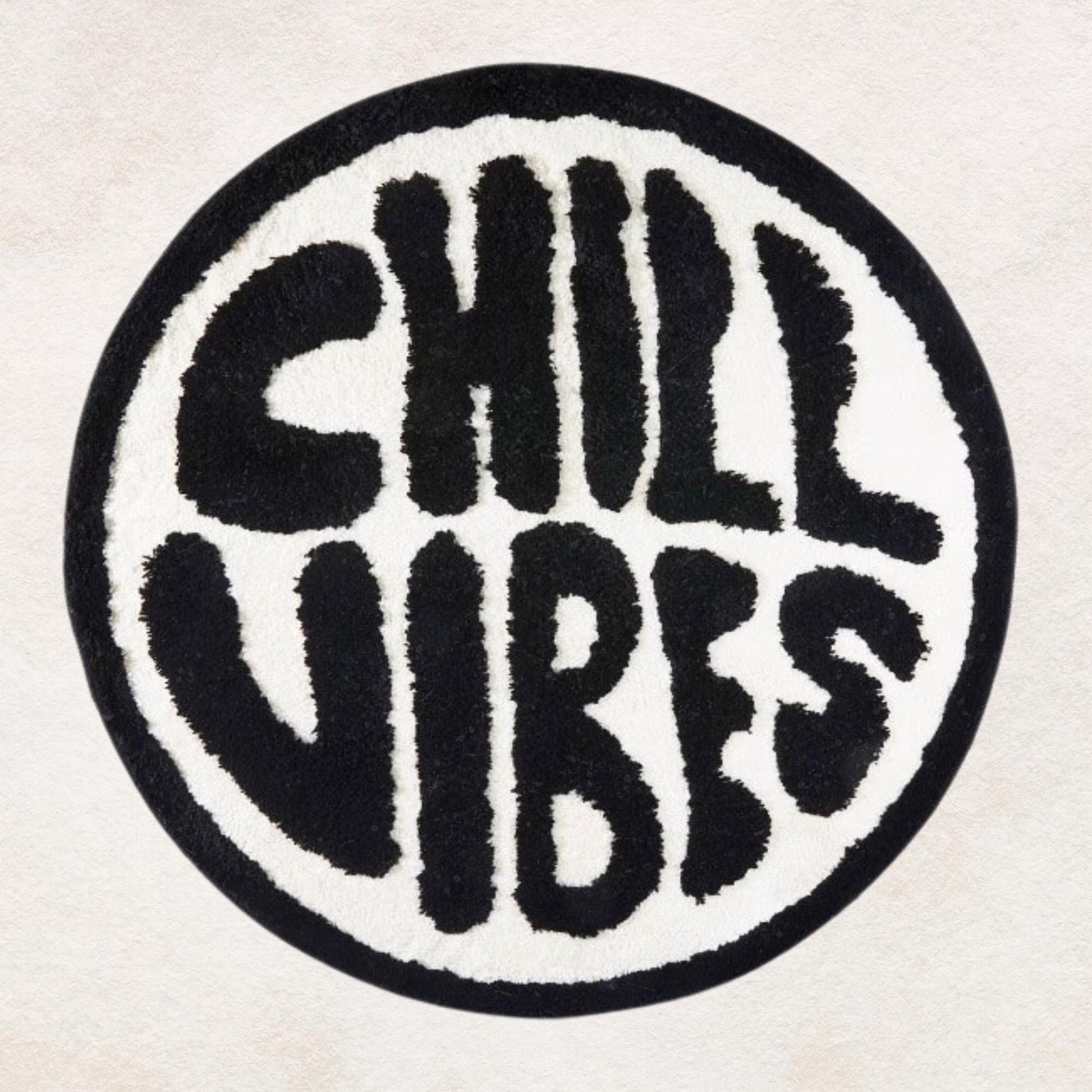 Chill Vibes Rug, Living Room Rug, Area Rug, Black And White Round Rug, Round Rug