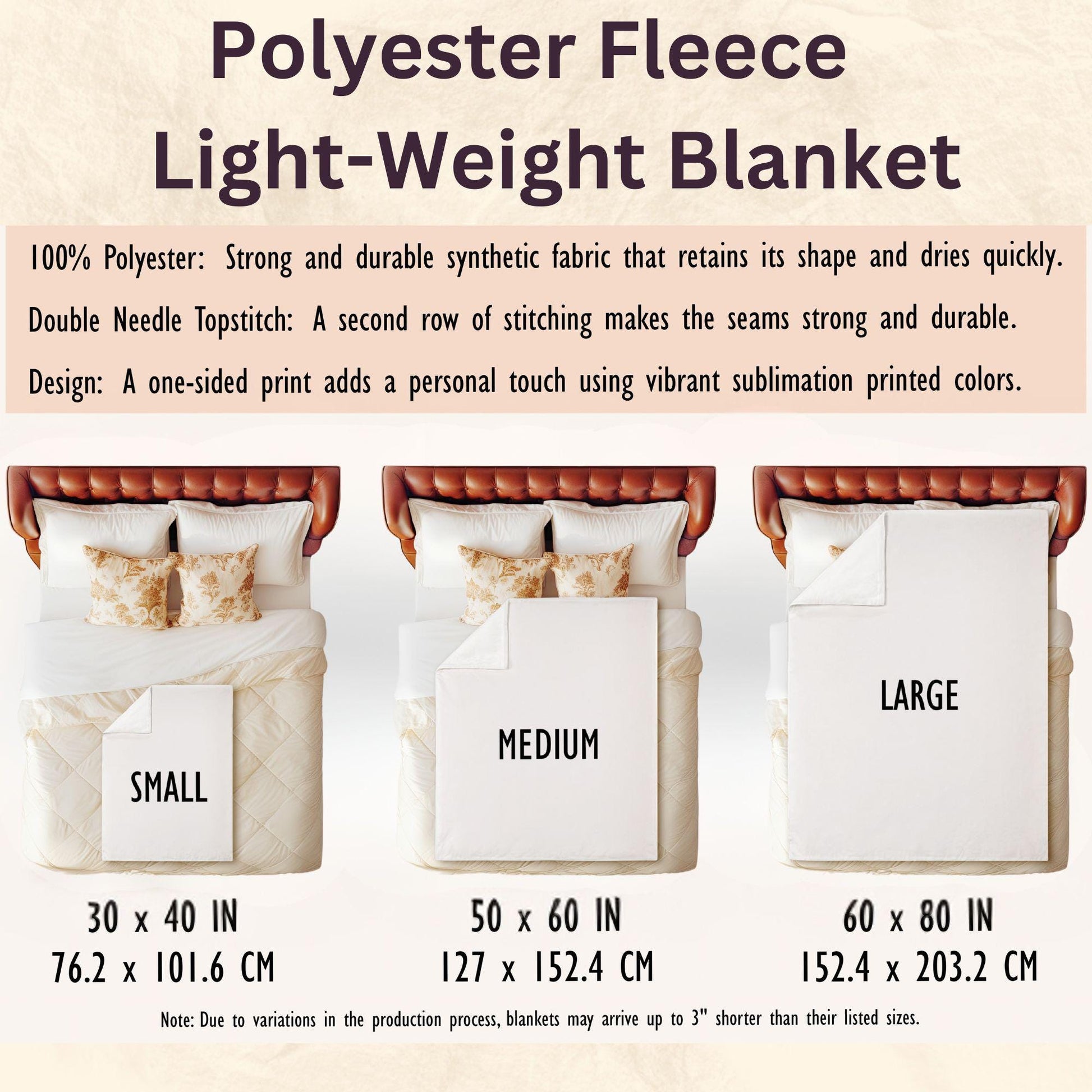 Material: 1 layer of plush fleece (100% soft, silky polyester) — lightweight, warm, soft, and wrinkle-resistant 🧵