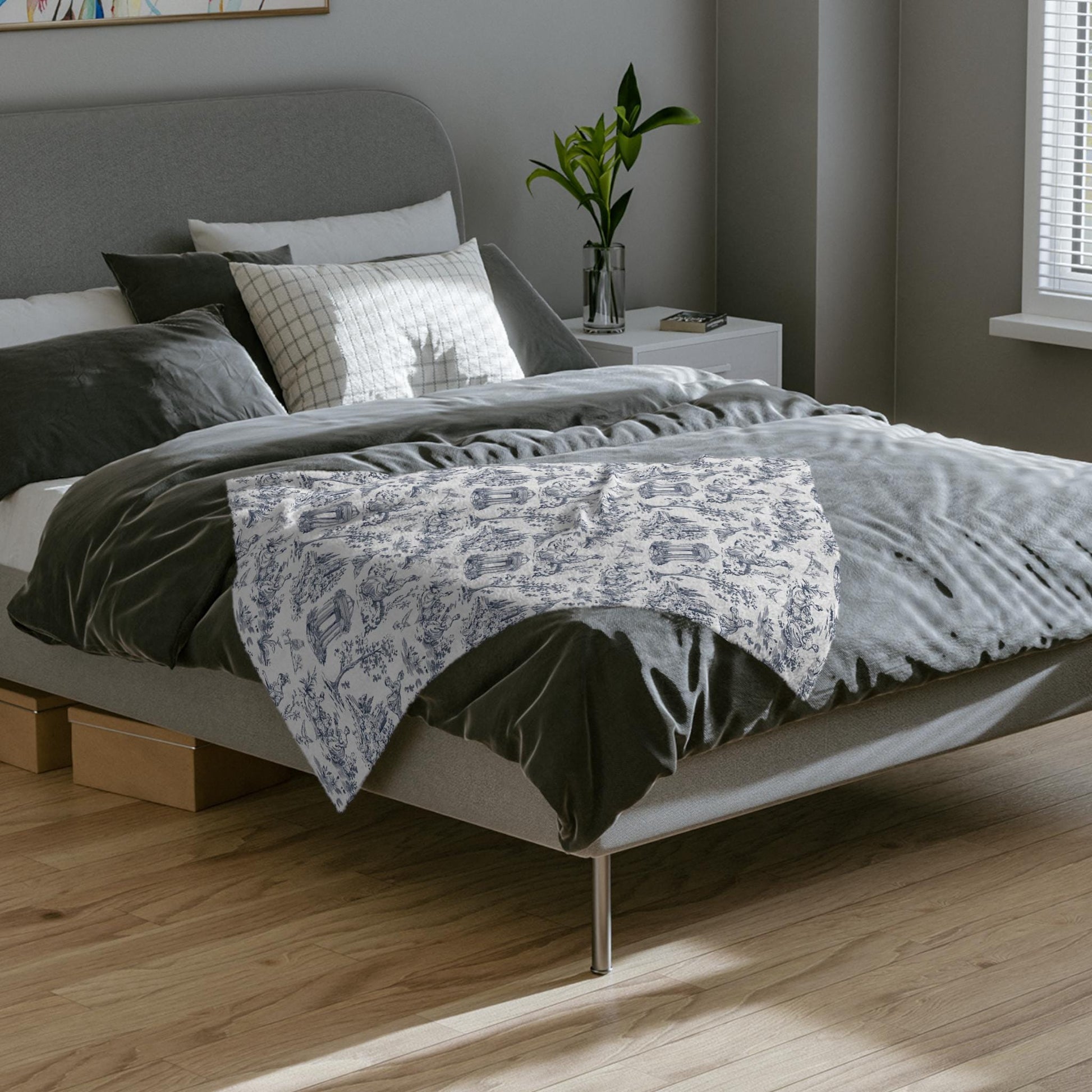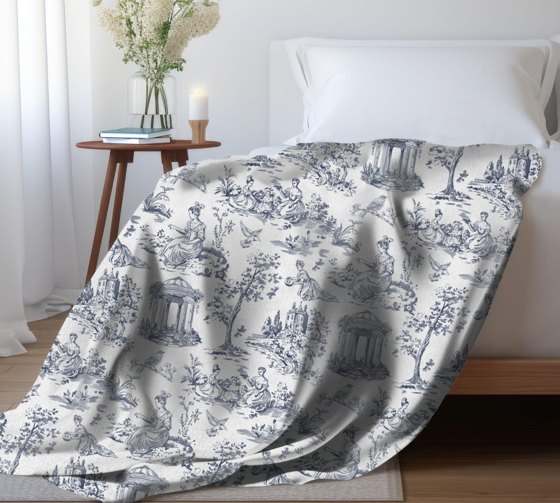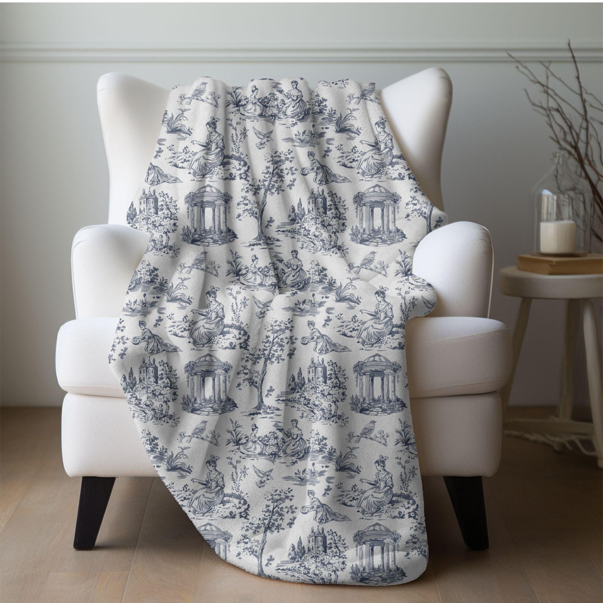 Chinoiserie Blanket Toile De Jouy Home Decor Blue White Toile Fleece Throw Blanket French Country Lap Blanket Chinoiserie Nursery Decor