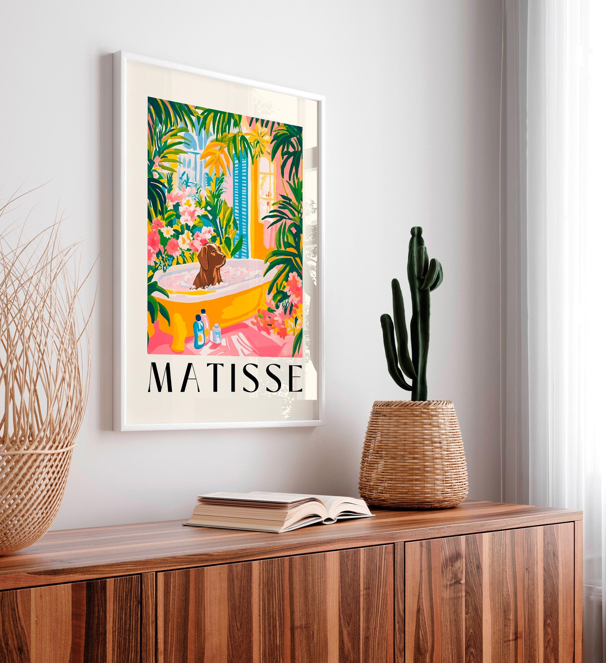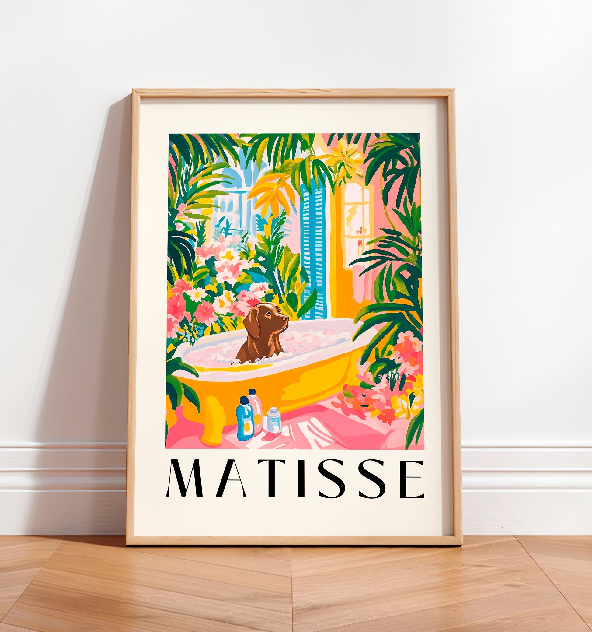Chocolate Labrador in Bathtub Art Print: Funny Tropical Bathroom Decor