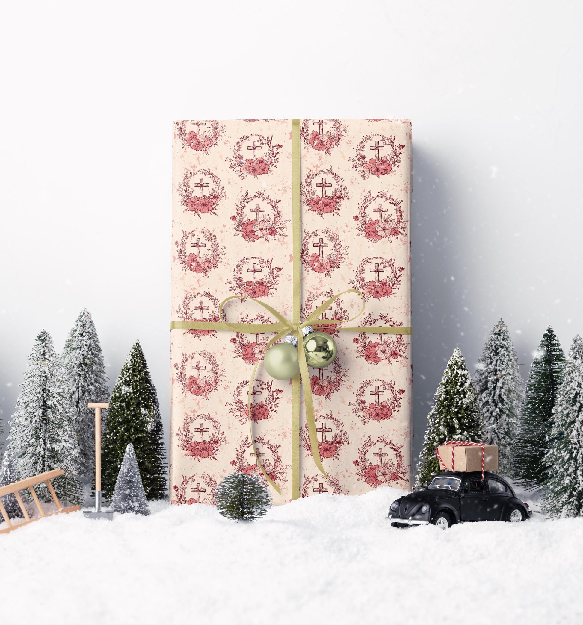 Christian Gift Wrap Baptism Theme Watercolor Floral | Coquette Aesthetic Wrapping Paper for Baby Dedication or Christening #2