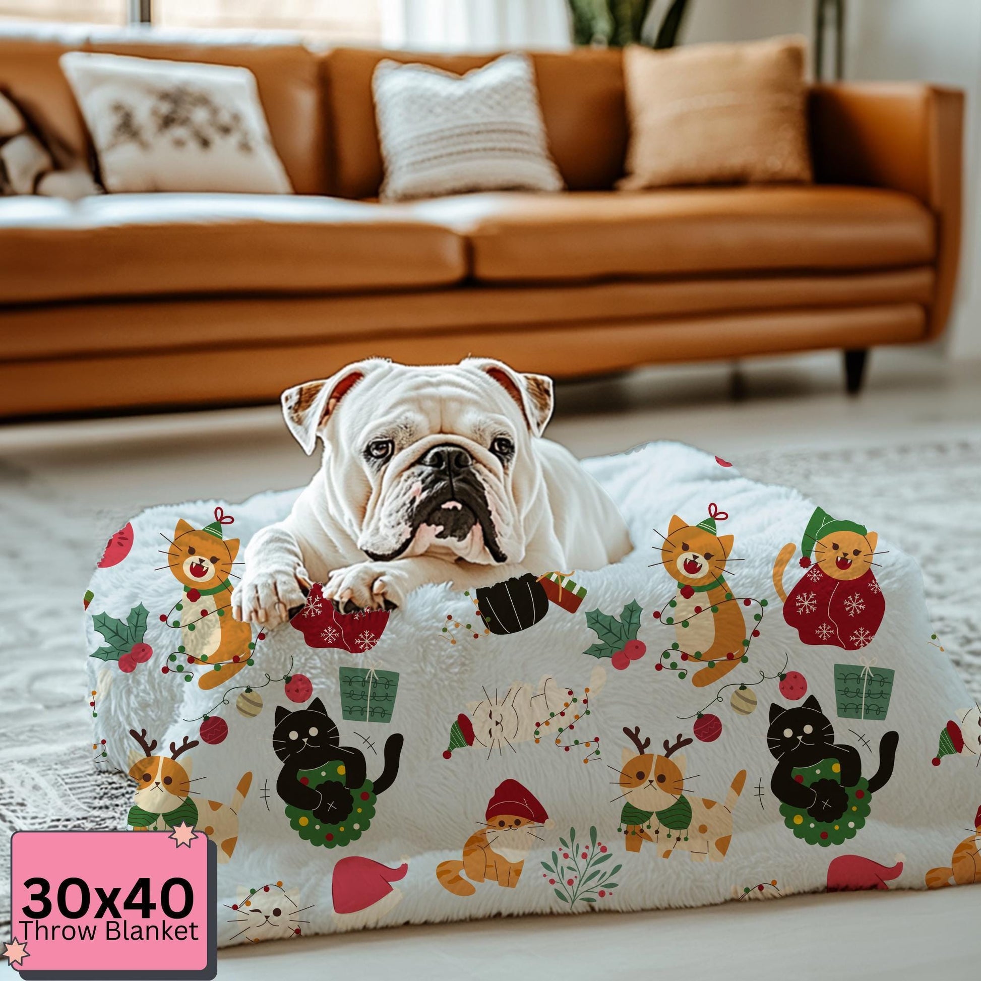 Christmas Cat Blanket for Cat Lovers, Cozy Fuzzy Throw Blanket, Cat Themed Gift, Cat Mom or Dad, Pet Owner Gift by HarborIslandDecor