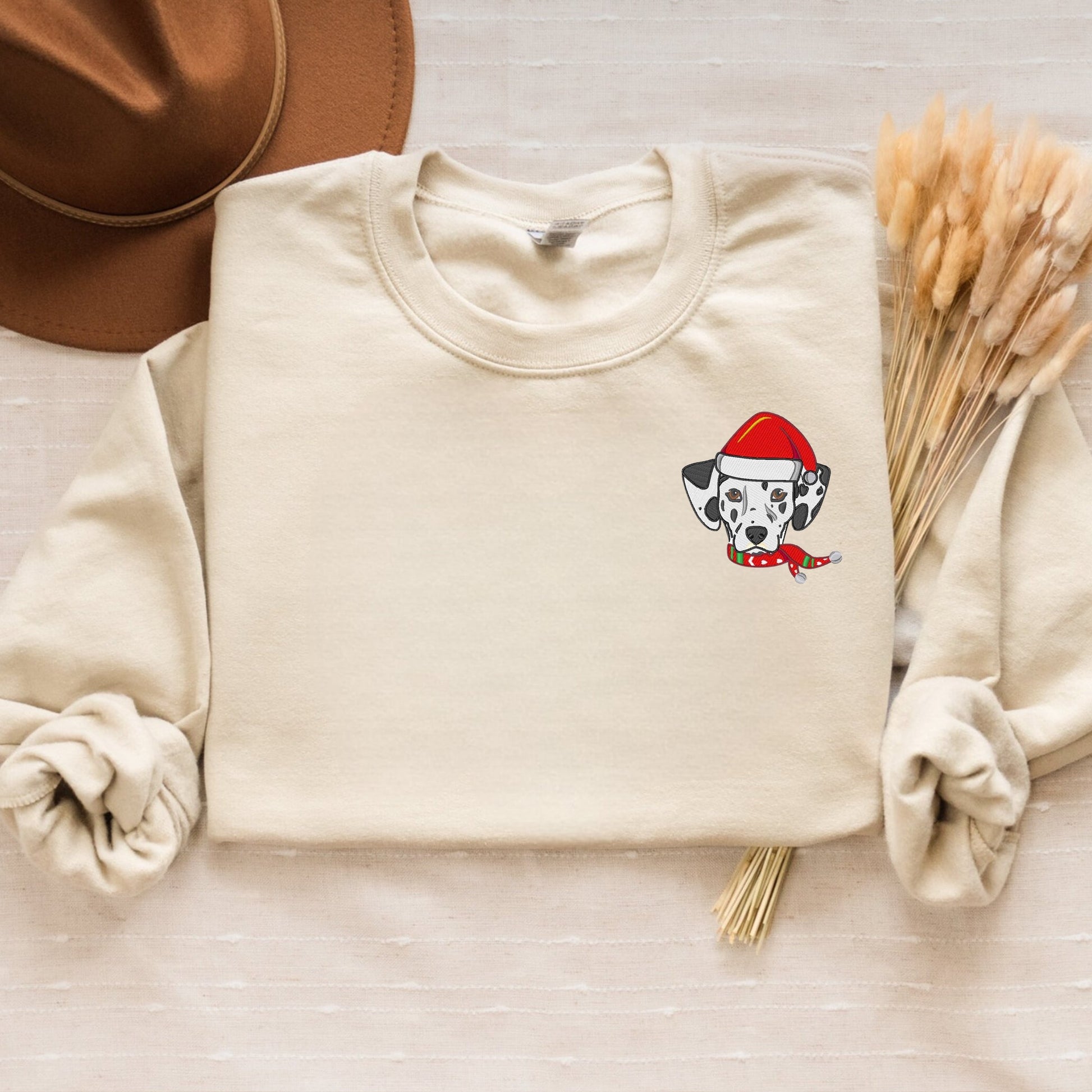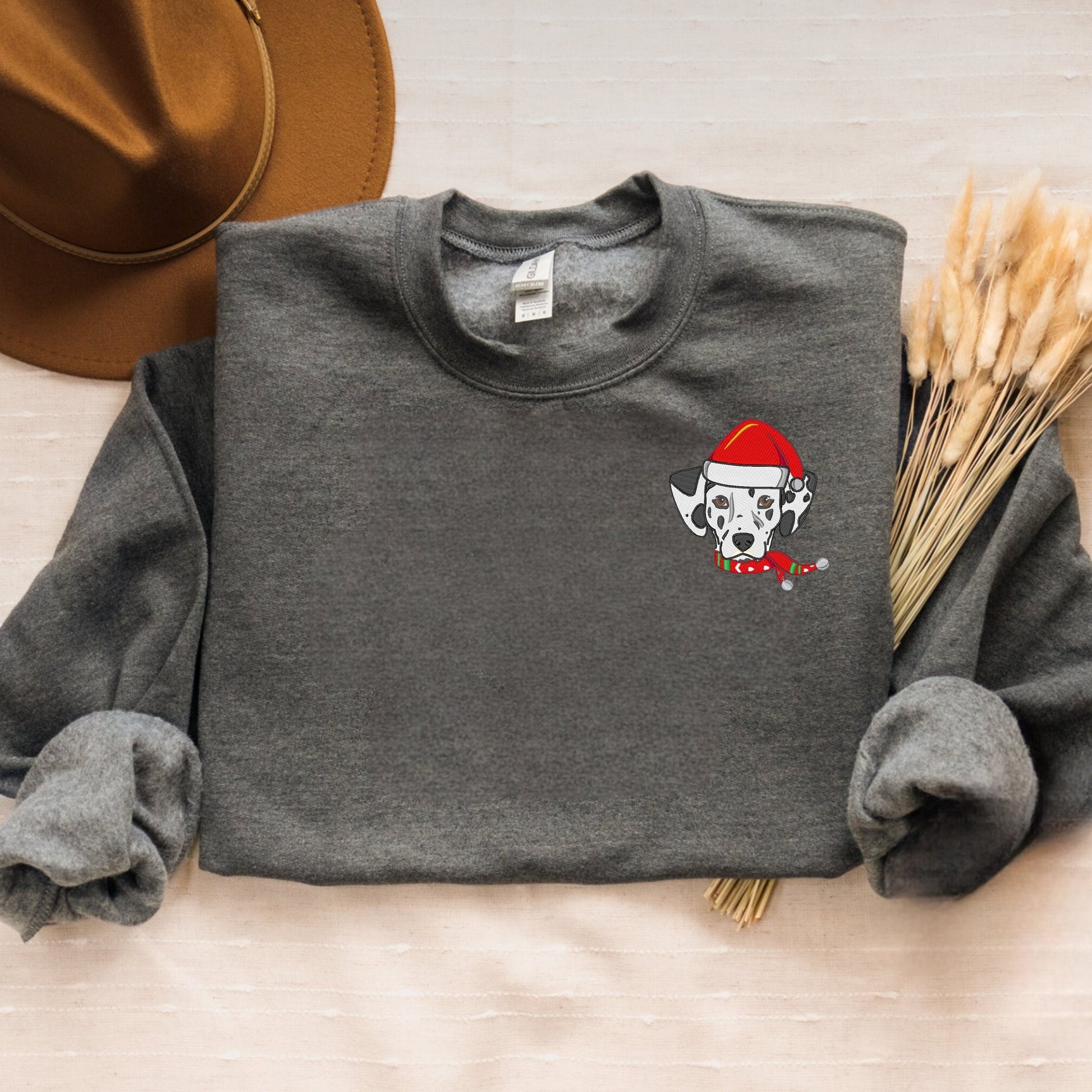 Christmas Dalmatian Sweatshirt Embroidered, Dalmatian Dog Santa Crewneck or Hoodie for Dalmatian Mom