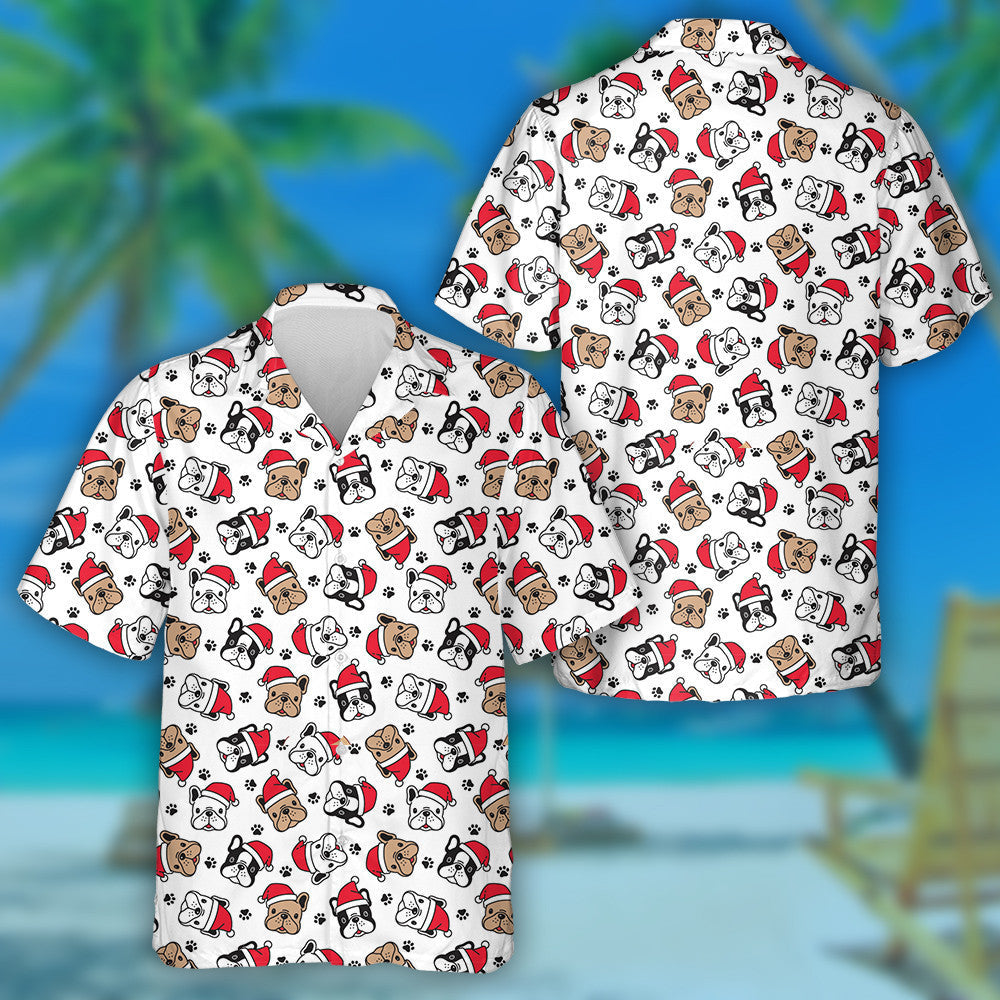 Christmas French Bulldog Paw And Santa Claus Hat Hawaiian Shirt, Hawaiian Shirt Gift, Christmas Gift