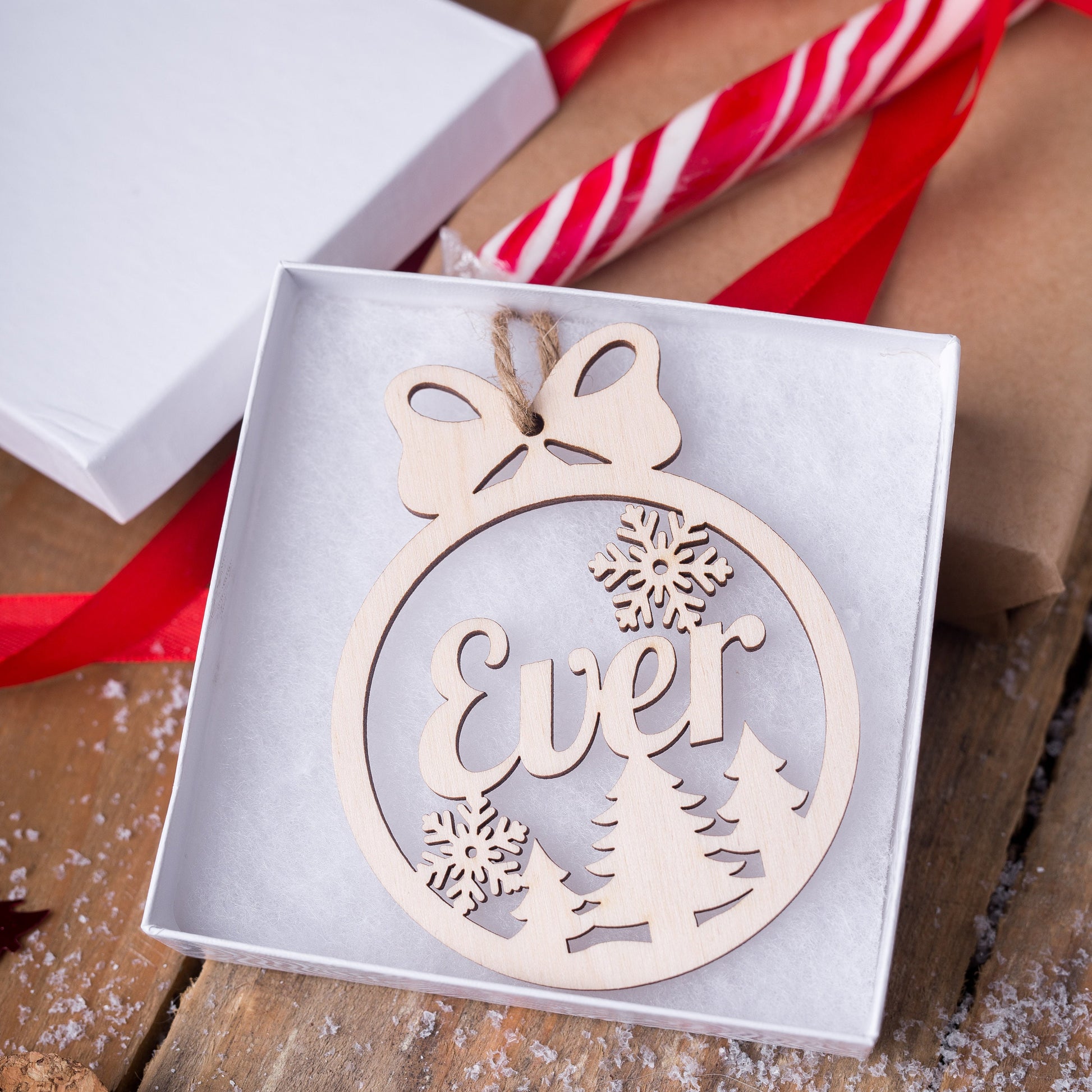 Celebrate the magic of the season with our beautifully crafted custom wooden ornament 🌟. Made from polished 3mm Ash Plywood, this ornament is lightweight, durable, and highlights the natural wood grain for a warm, rustic charm that perfectly complements your holiday décor.