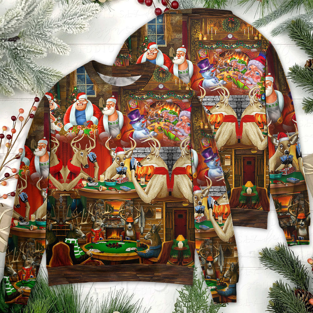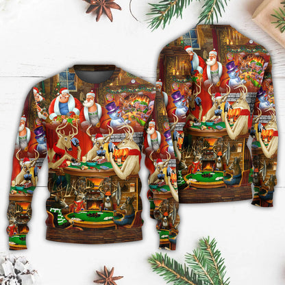 Christmas Poker Gambling Santa And Friends Play Poker Ugly Christmas Sweater, Christmas Ugly Sweater, Christmas Gift, Gift Christmas 2024