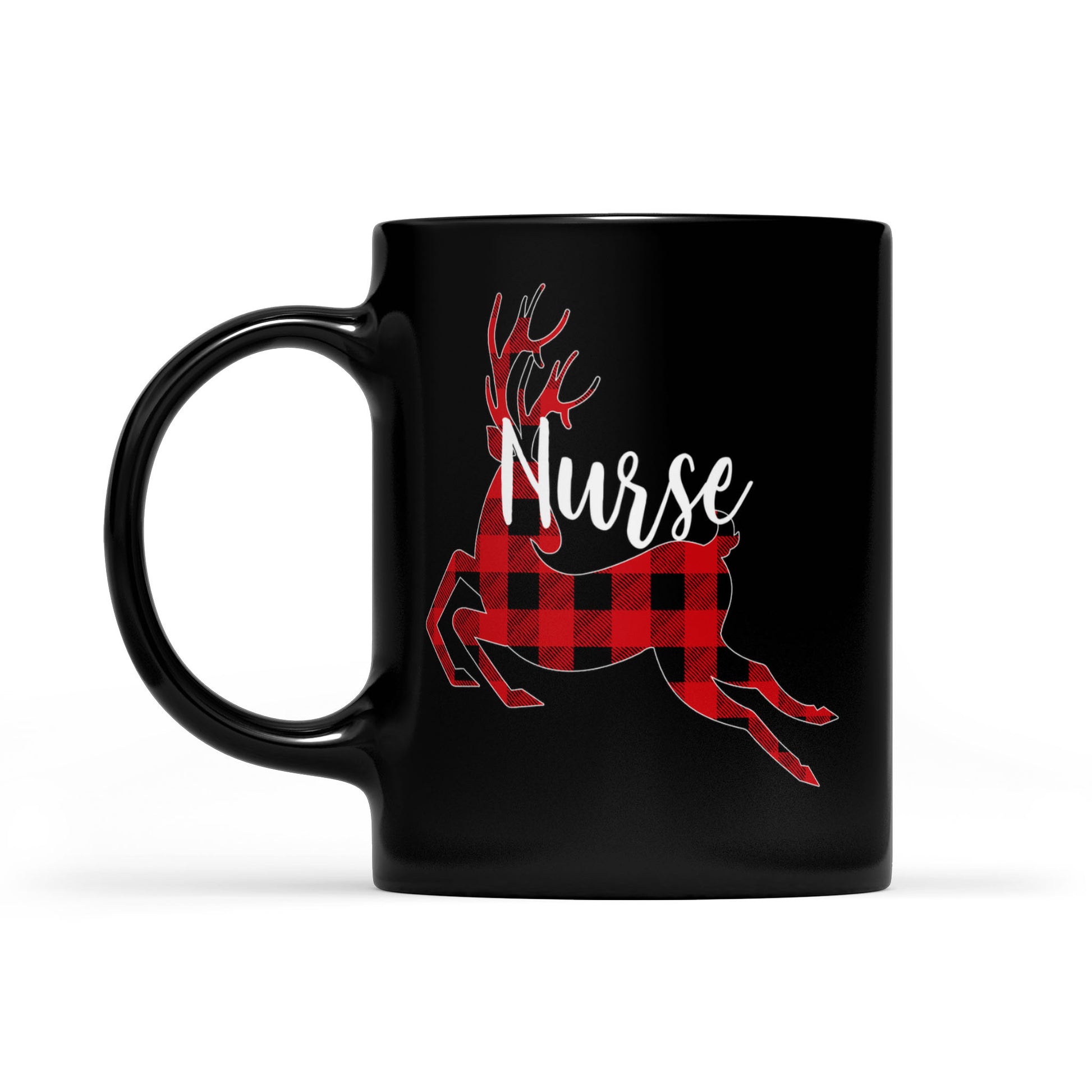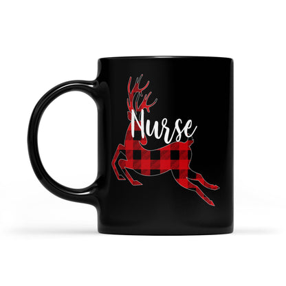 Christmas Reindeer Buffalo Plaid Nurse Funny Gift Black Mug Gift For Christmas