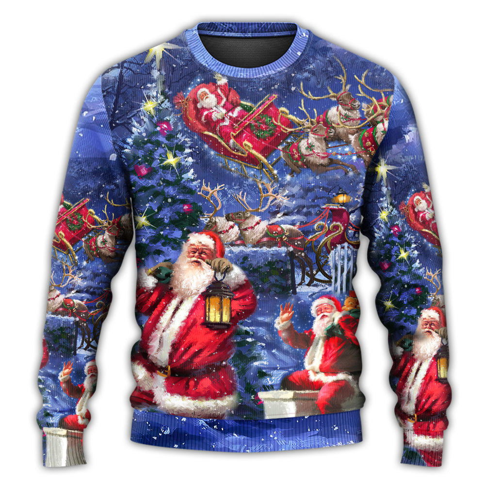Christmas Santa Claus Chilling Happy Xmas Light Art Style Ugly Christmas Sweater, Christmas Gift, Gift Christmas 2024