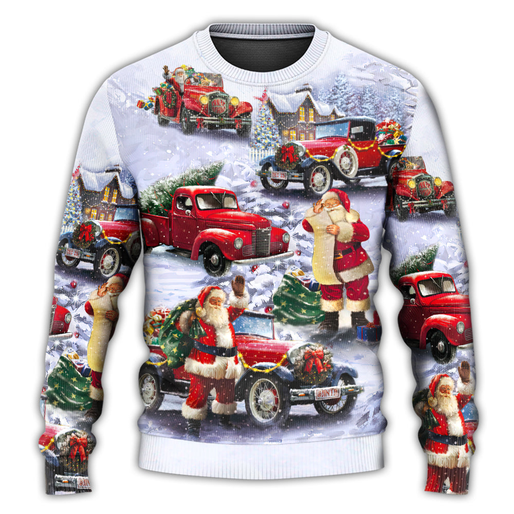 Christmas Santa Claus Funny Red Truck Gift For Xmas Painting Style Ugly Christmas Sweater, Christmas Gift, Gift Christmas 2024
