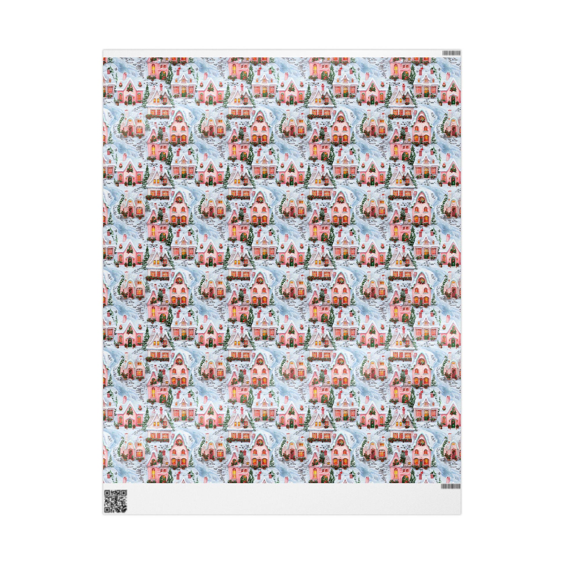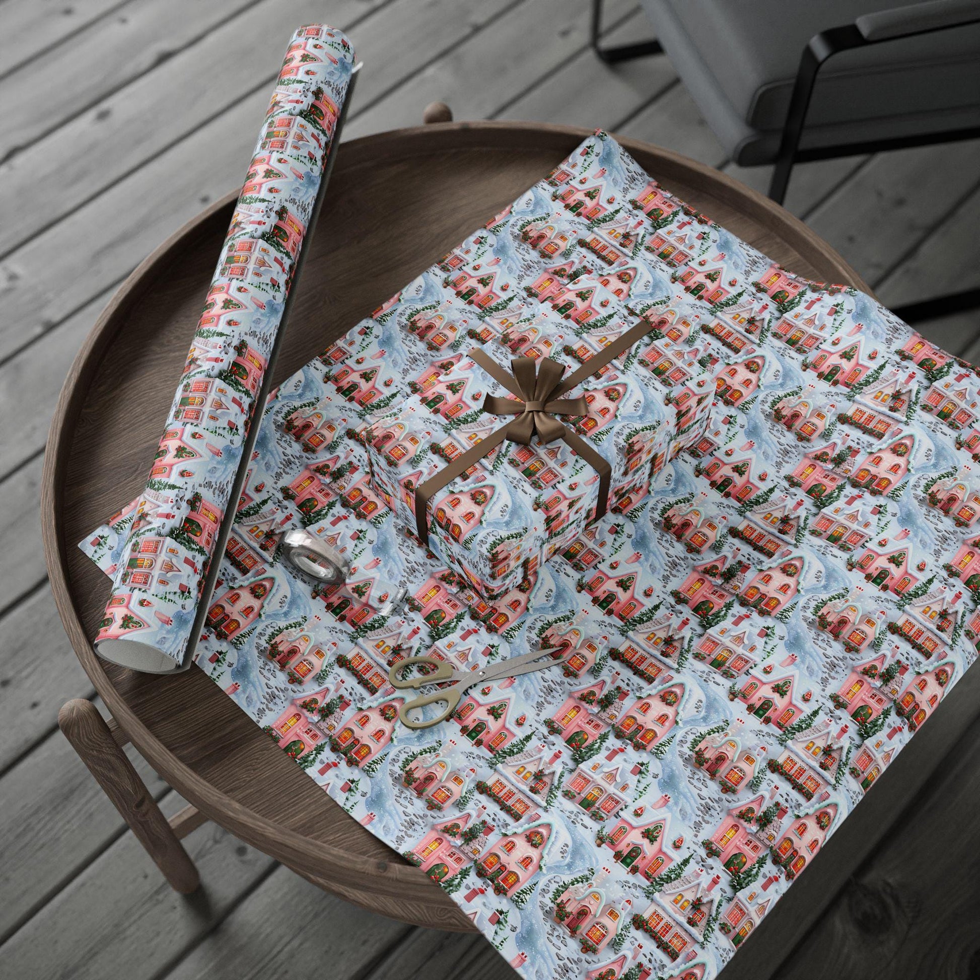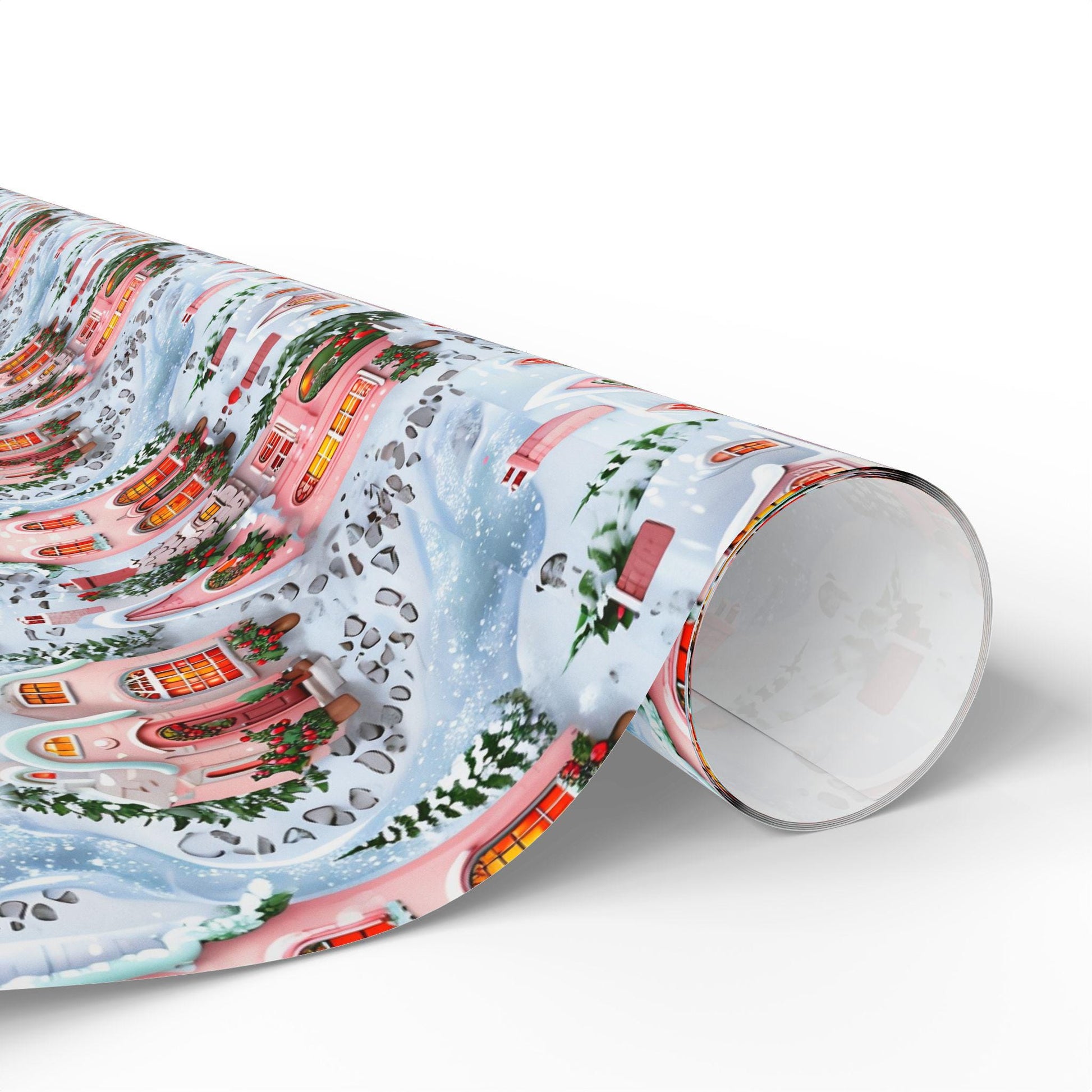 Christmas Wrapping Paper, Holiday Gift Wrap with Cozy Winter Houses, Festive Present Christmas Gifts & Seasonal Parties, Pink Winter Village