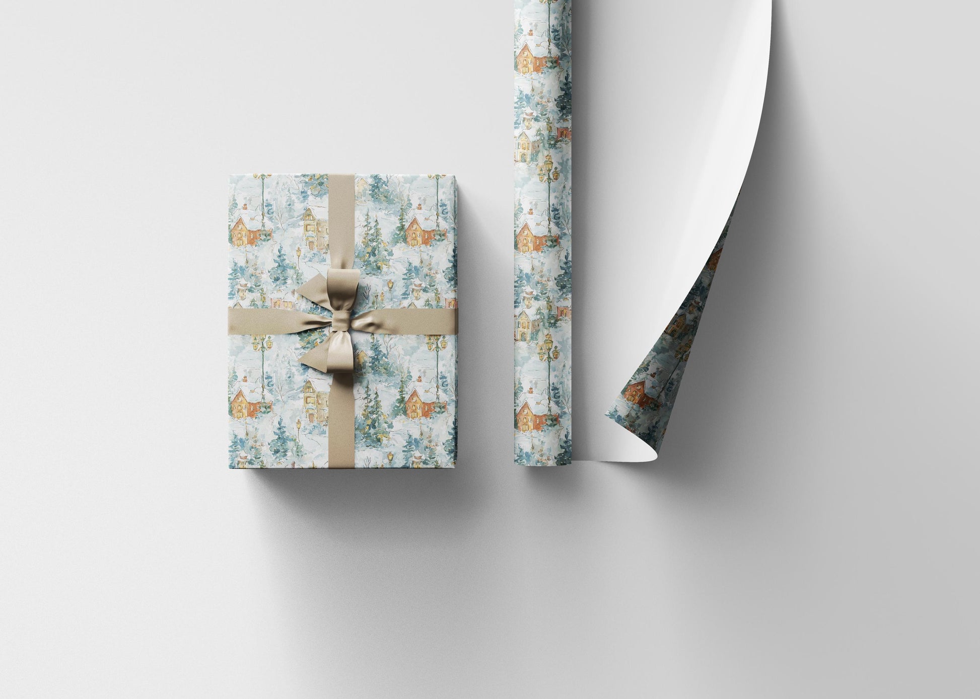 Christmas Wrapping Paper Roll with Village Design, Snowy House Gift Wrap for Holiday Presents #7