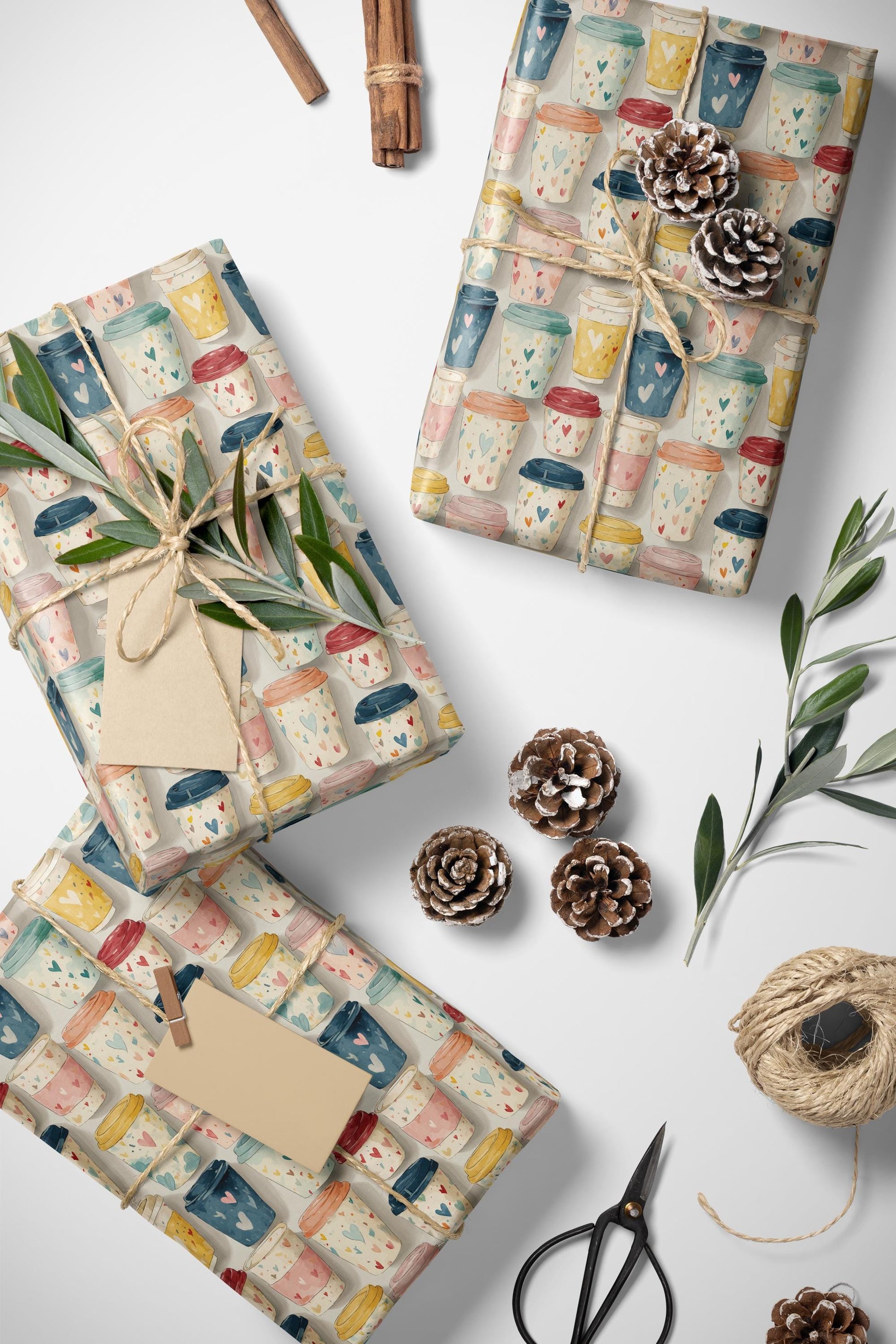 Coffee Wrapping Paper Premium Design | Watercolor Beans Gift Wrap | Coffee Addict Holiday Supplies #2