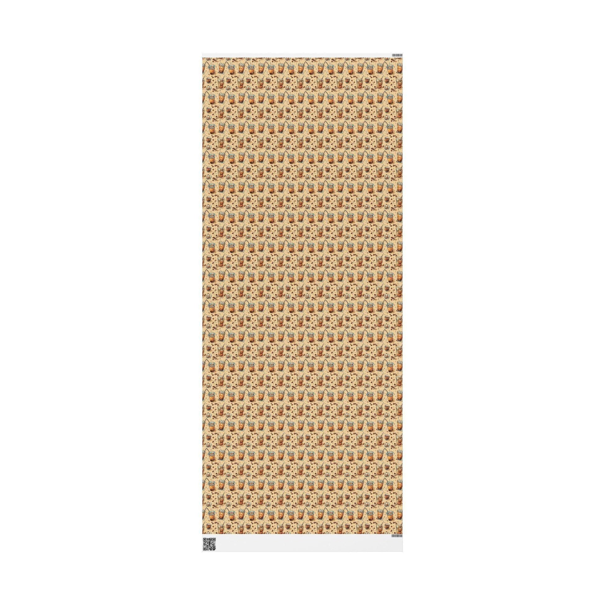 Coffee Wrapping Paper Premium Watercolor | Barista Gift Wrap Roll | Cozy Coffee Addict Design #4