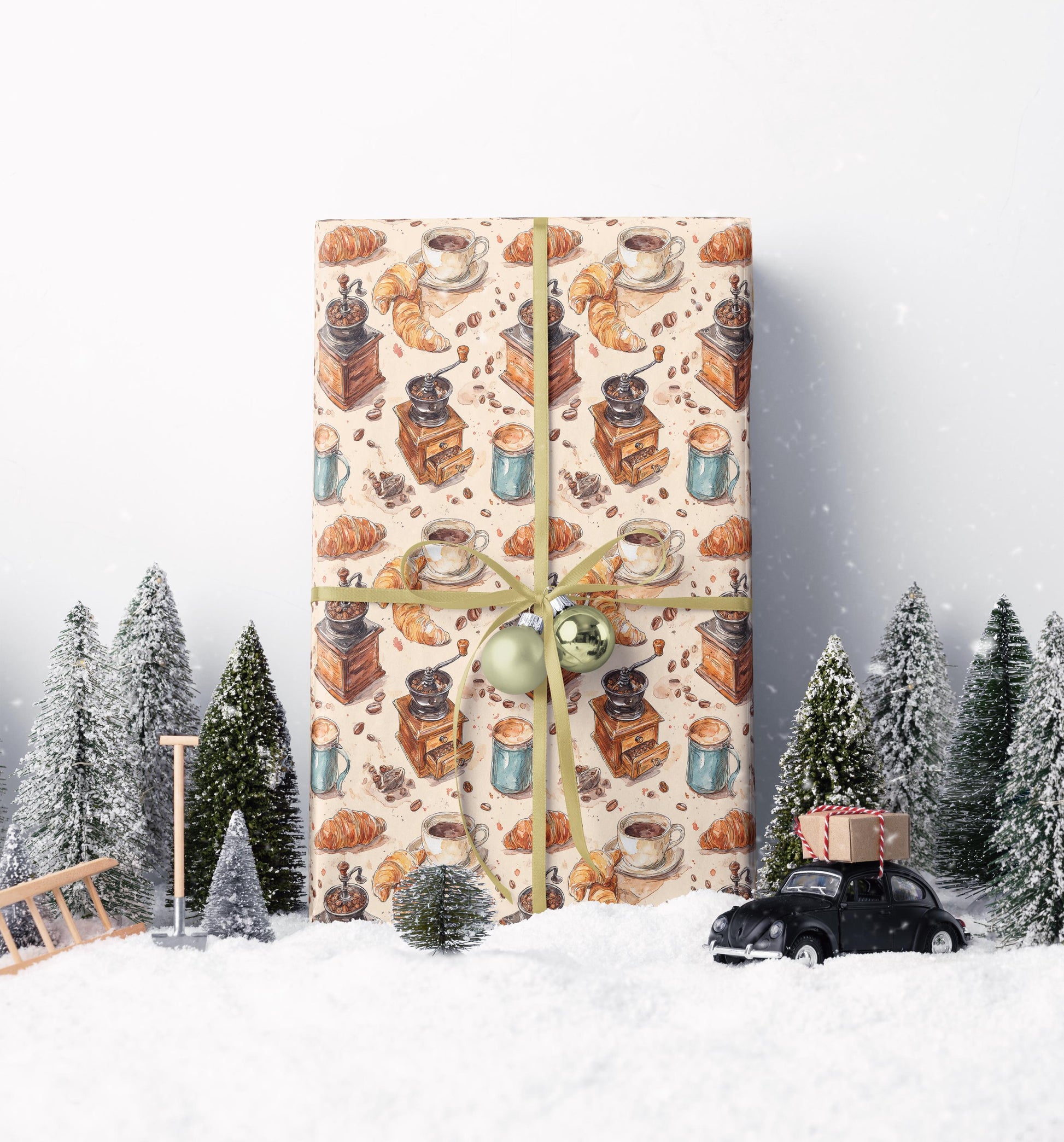 Coffee Wrapping Paper Watercolor Coffee Beans | Premium Barista Gift Wrap Roll | Rustic Cozy Design #7