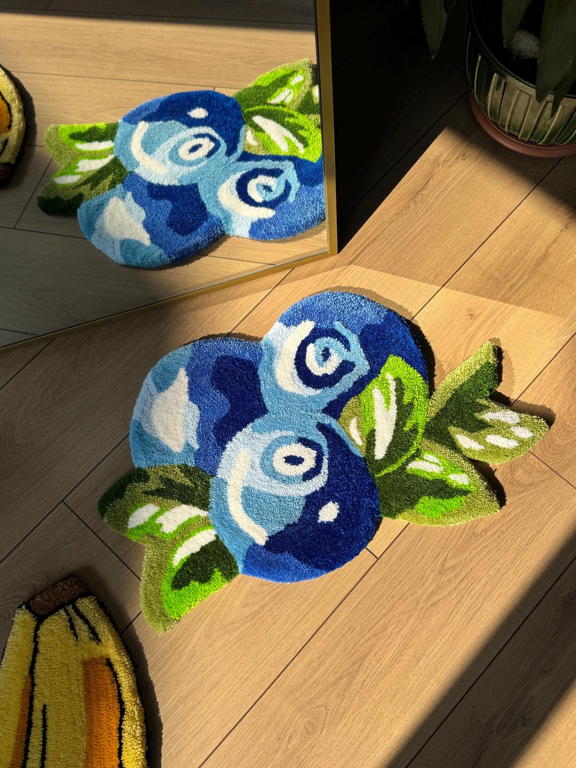 Colorful 3D Fruit Basket Rug – Handmade Tufted Raspberry, Grape, Strawberry Blueberry Carpet – Playful Kitchen & Living Room Decor