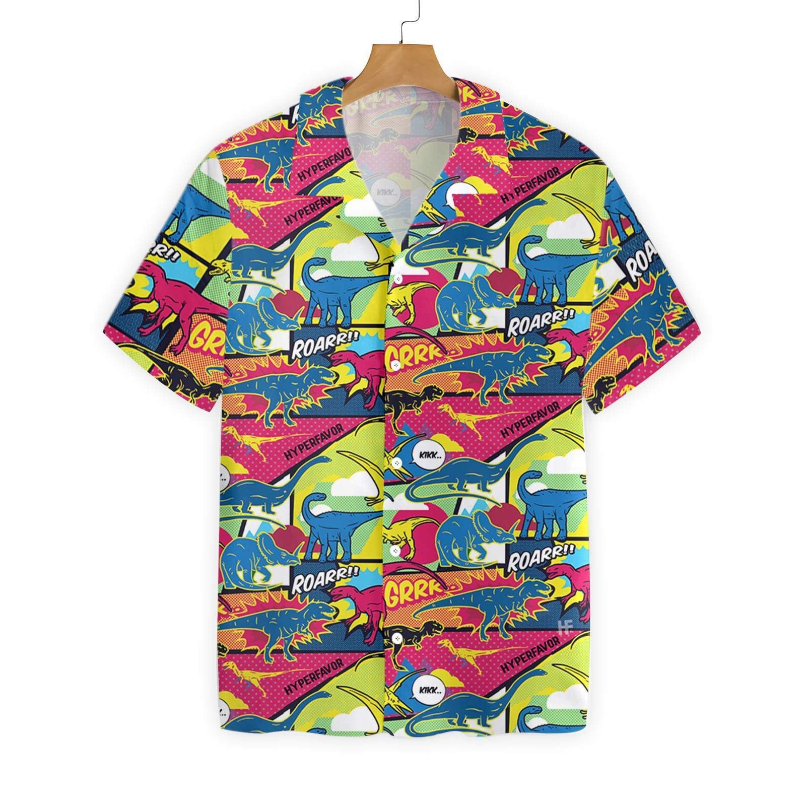 Colorful Comic Dinosaur View Pattern Hawaiian Shirt, Hawaiian For Gift