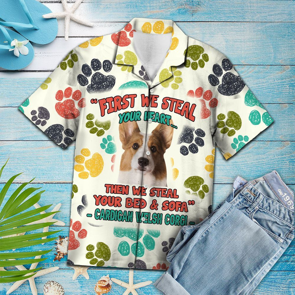 Colorful Paws Cardigan Welsh Corgi Steal Your Heart Hawaiian Shirt, Hawaiian Shirt Gift, Christmas Gift