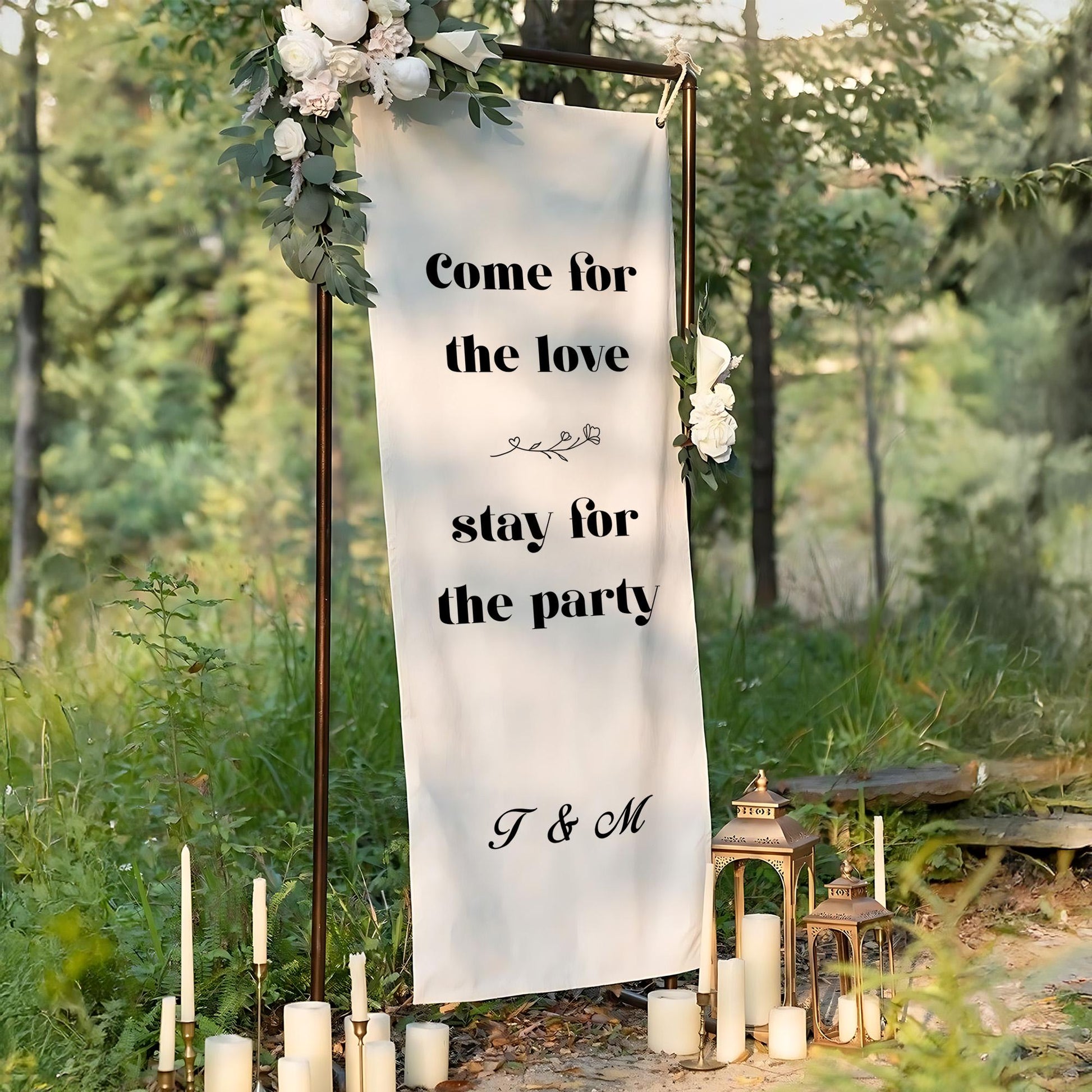 Come for the Love Wedding Banner – Funny Fabric Welcome Sign with Custom Initials, Modern Minimalist Ceremony or Reception Party Decor