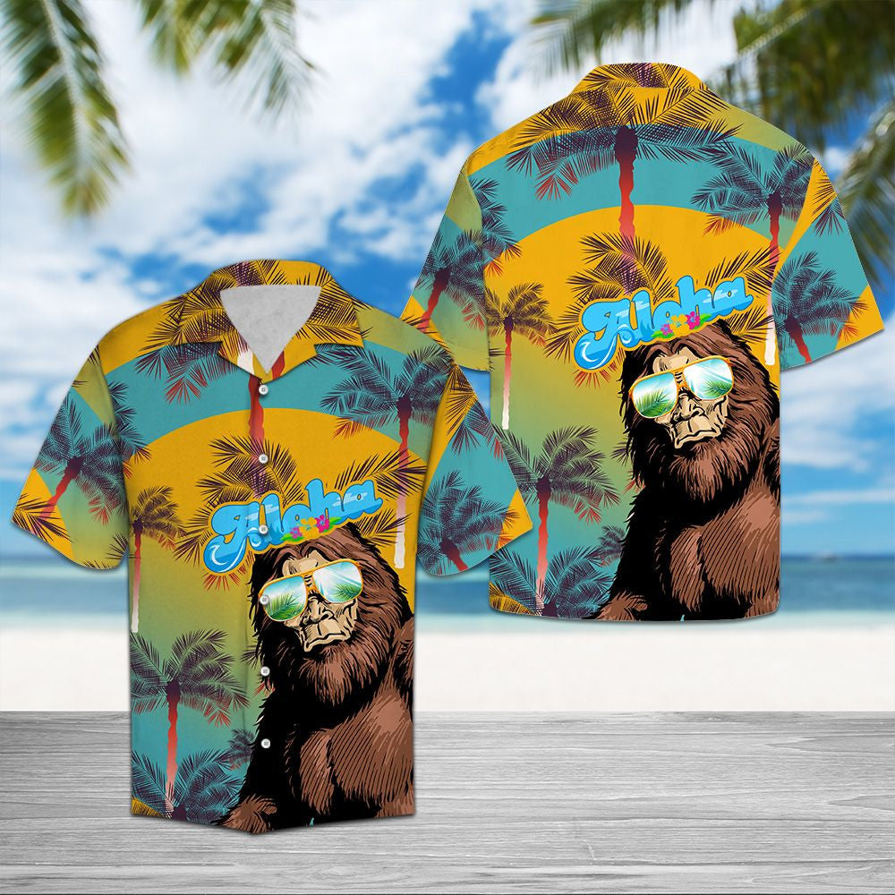 Cool Bigfoot Wear Sunglasses Palm Trees Design Hawaiian Shirt, Hawaiian Shirt Gift, Christmas Gift