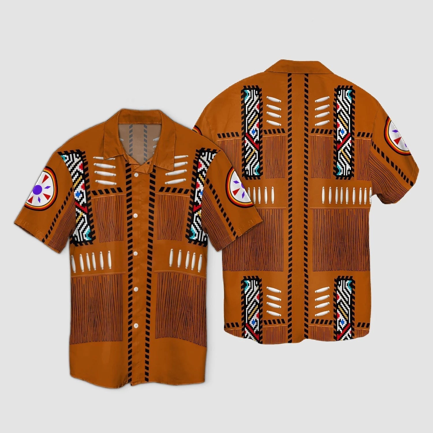 Cool Native American Dark Orange Design Hawaiian Shirt, Hawaiian Shirt Gift, Christmas Gift