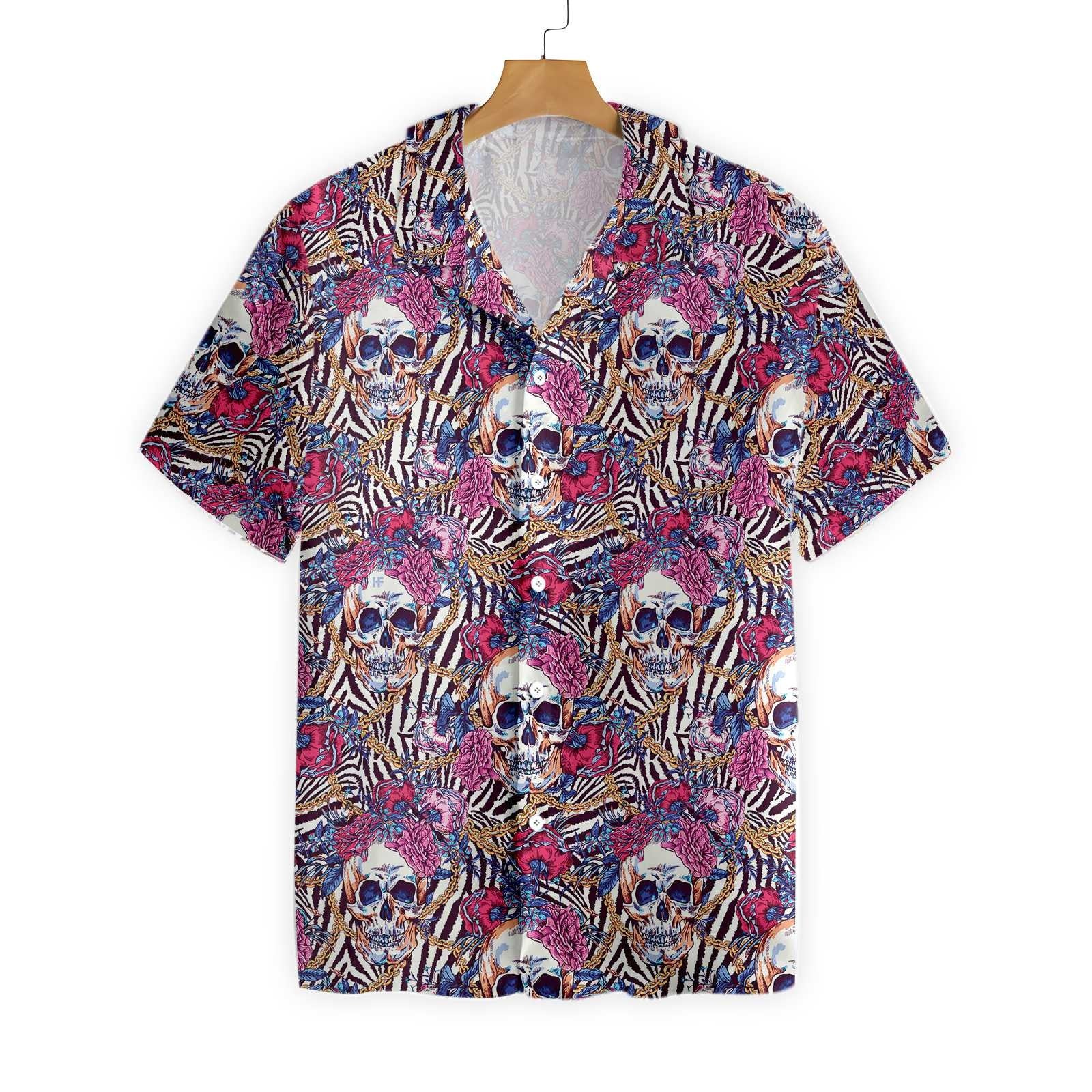 Cool Skull With Roses On Zebra Design Hawaiian Shirt, Hawaiian Shirt Gift, Christmas Gift