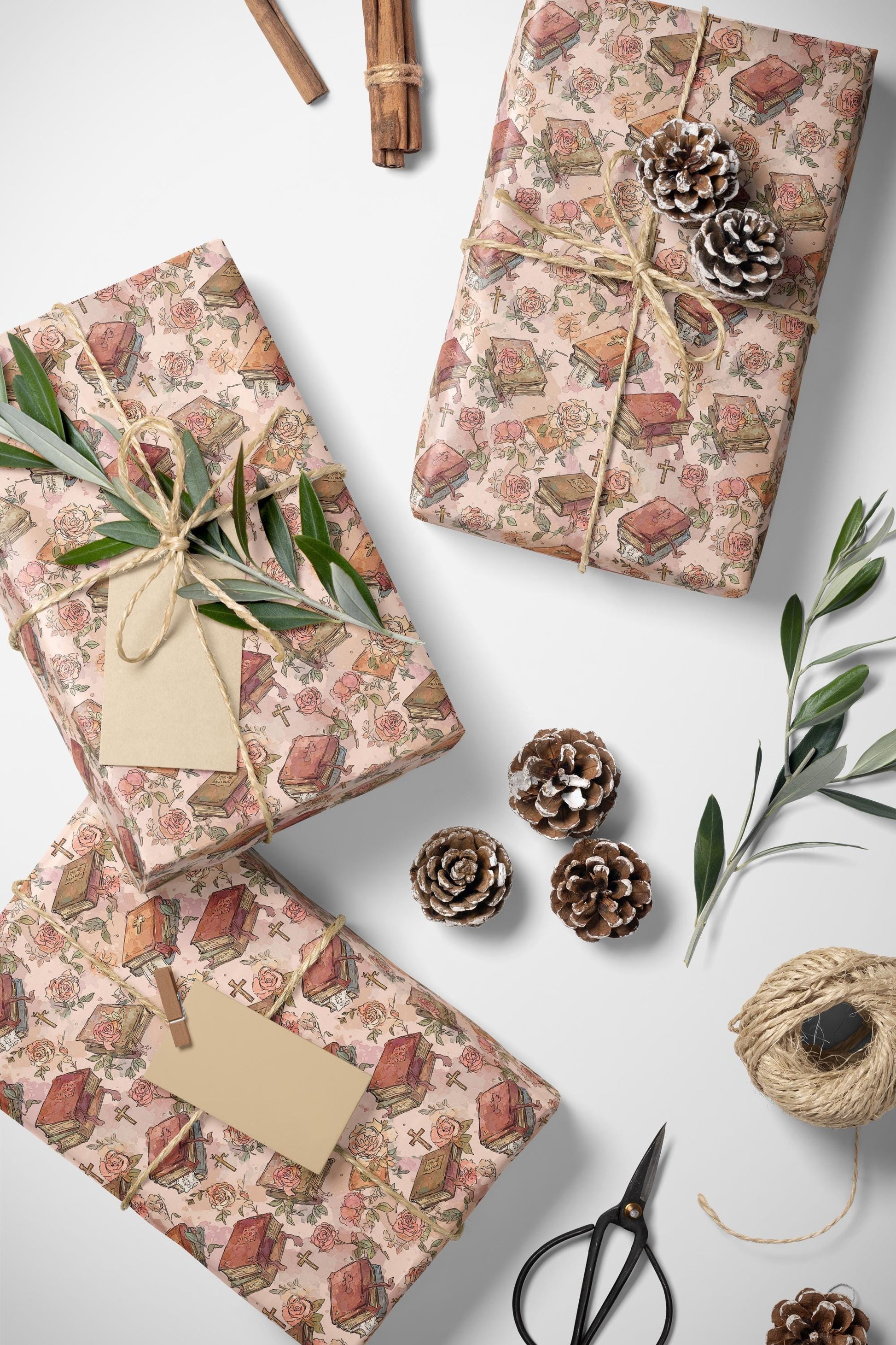 Coquette Wrapping Paper for Christian Baptism | Watercolor Christening Gift Wrap for Baby #20