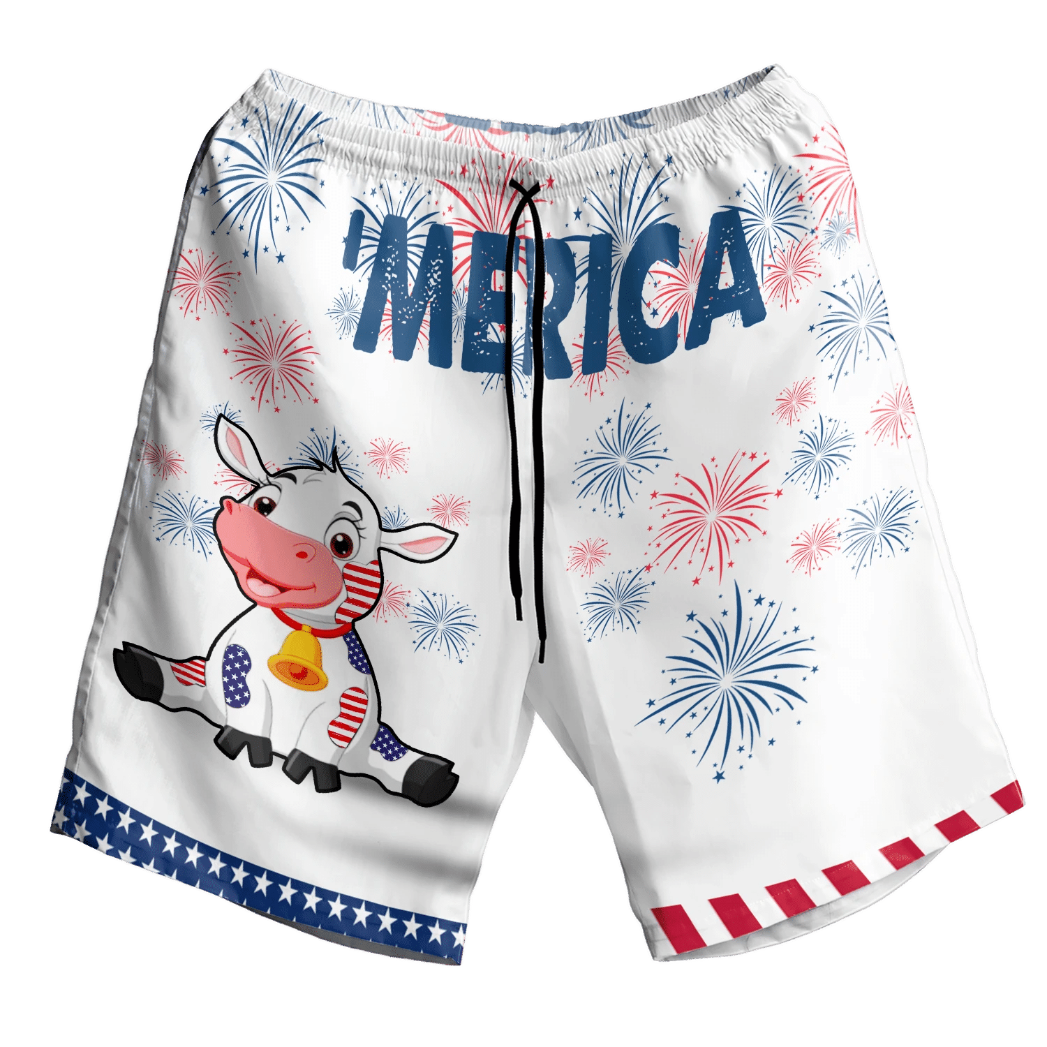 Cow Beer Dancing Blue And Red Firework Hawaiian Shirt, Hawaiian Shirt Gift, Christmas Gift