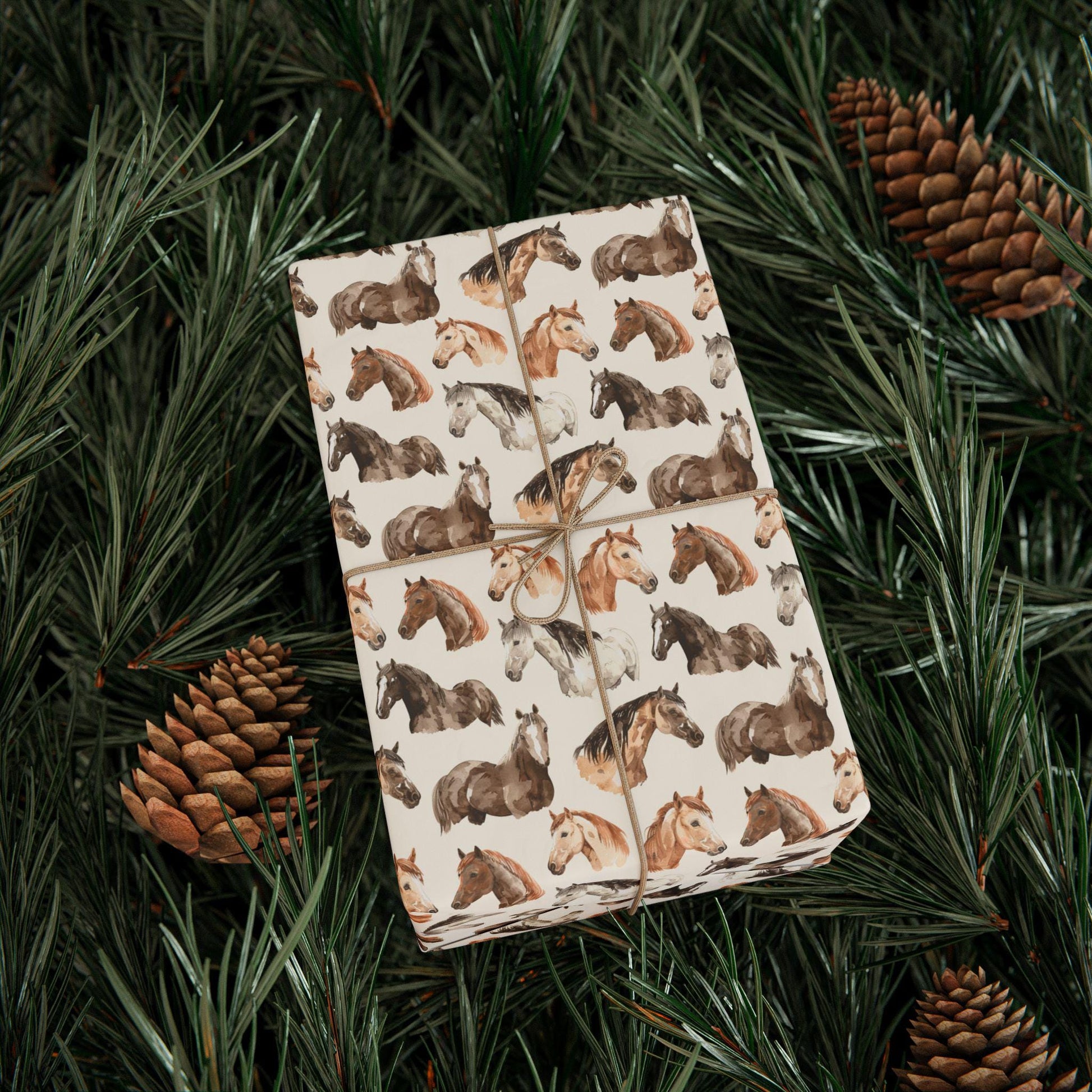Cowgirl Horse Wrapping Paper, Christmas Equestrian Gift Wrap, Winter Riding Wrap, Holiday Present Paper, Horse Lover Festive Sheet