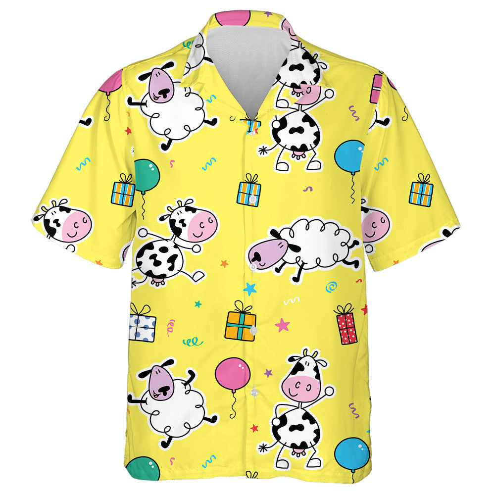Cows And Sheep With Gifts And Balloons Hawaiian Shirt,Hawaiian Shirt Gift, Christmas Gift
