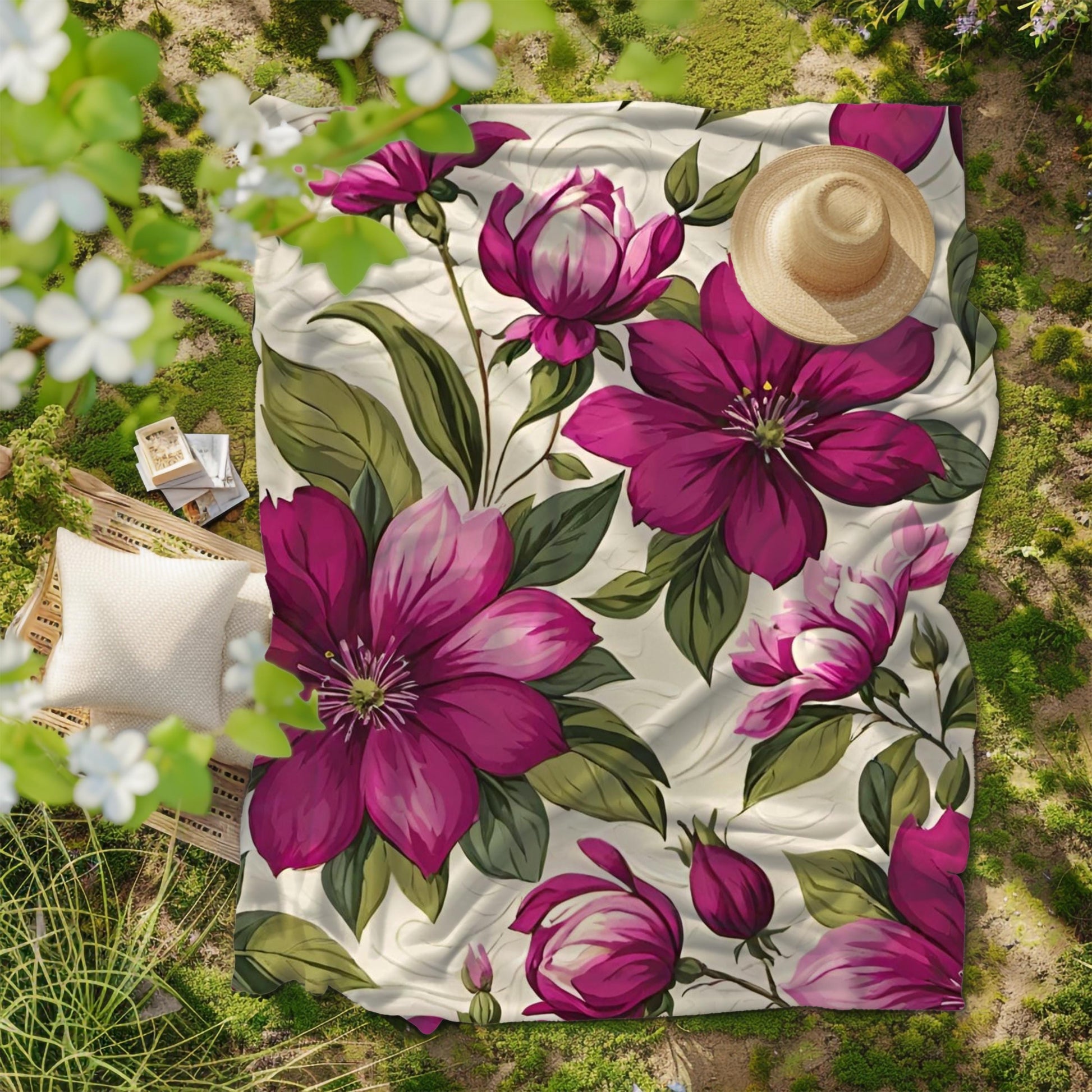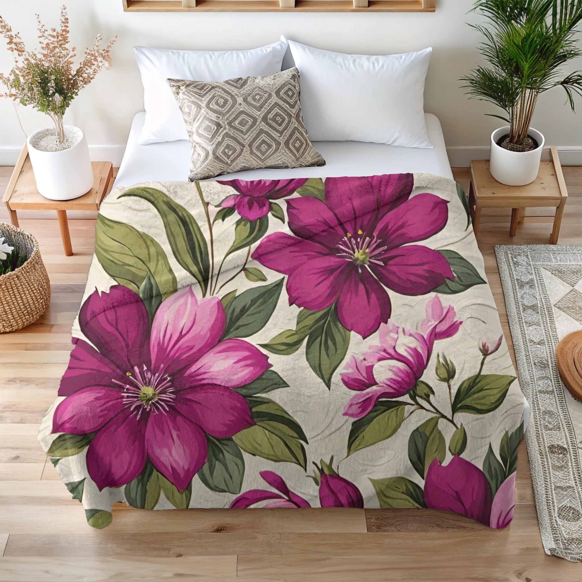Cozy Floral Plush Blanket, Vibrant Pink Floral Throw, Soft Bright Blanket, Feminine Decor, Gift for Her, Mom, Friend, Nature or Flower Lover