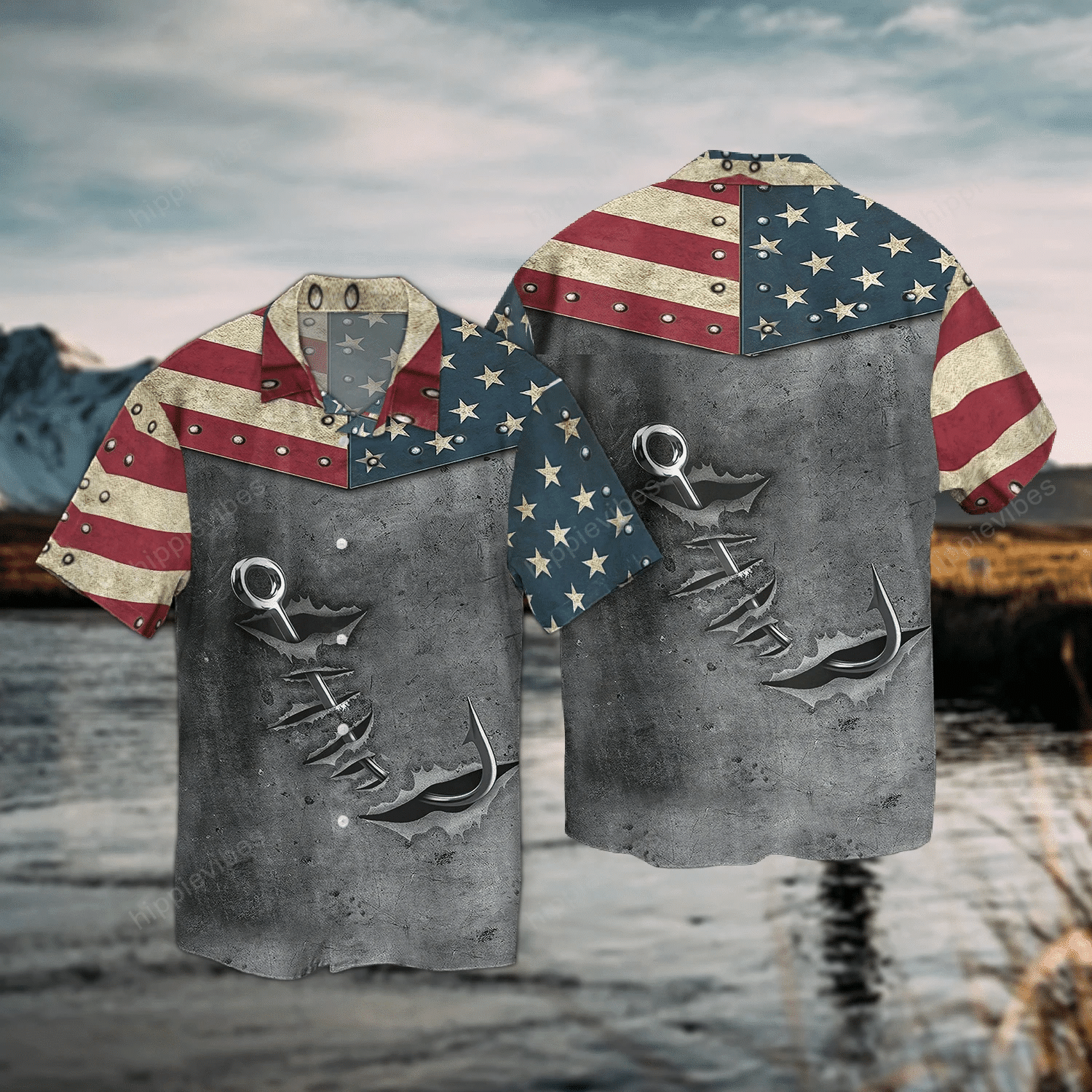 Crack Fishing American Flag Rustic Style Hawaiian Shirt, Hawaiian Shirt Gift, Christmas Gift