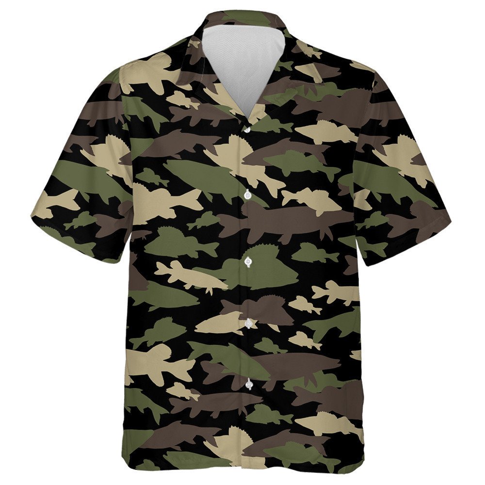 Creative Dark Green Brown Camouflage Fishing Silhouette Hawaiian Shirt, Hawaiian Shirt Gift, Christmas Gift