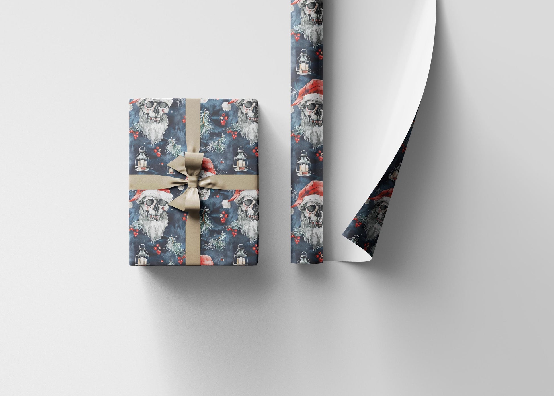 Creepy Santa Skull Wrapping Paper Roll, Gothic Christmas Gift Wrap for Alternative Holiday Gifts #20