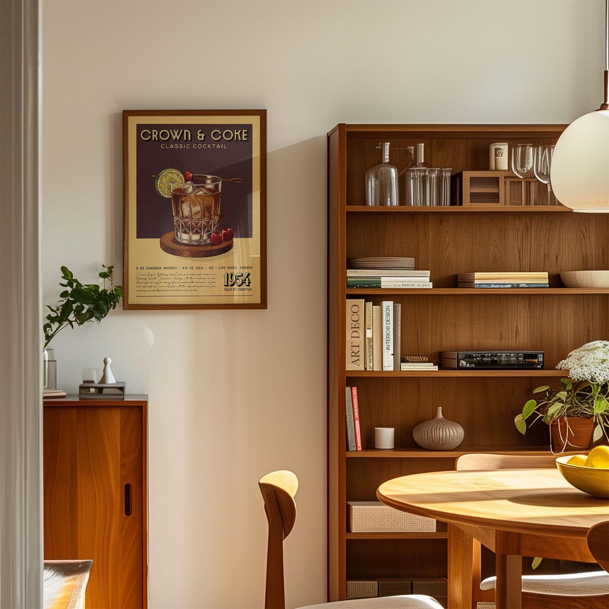 Crown and Coke Cocktail Print, Crown and Coke Cocktail Poster | Bar Cart Prints | Vintage Whiskey Poster for Kitchen Bar Cart