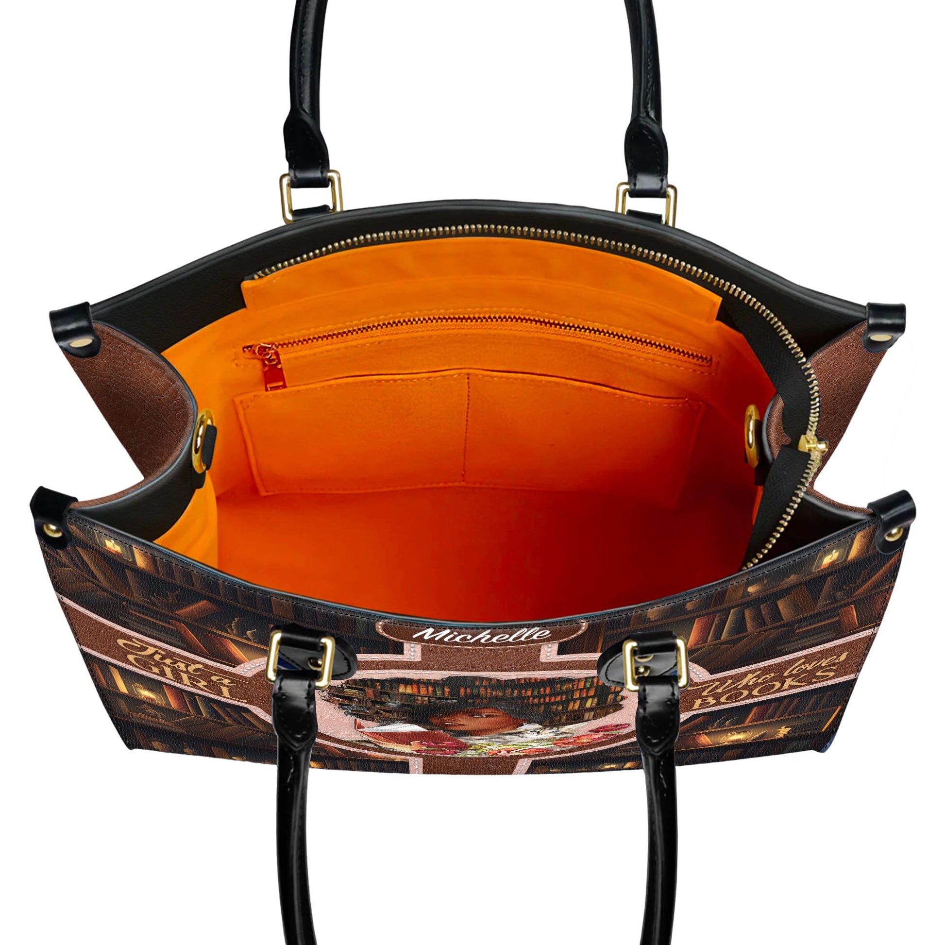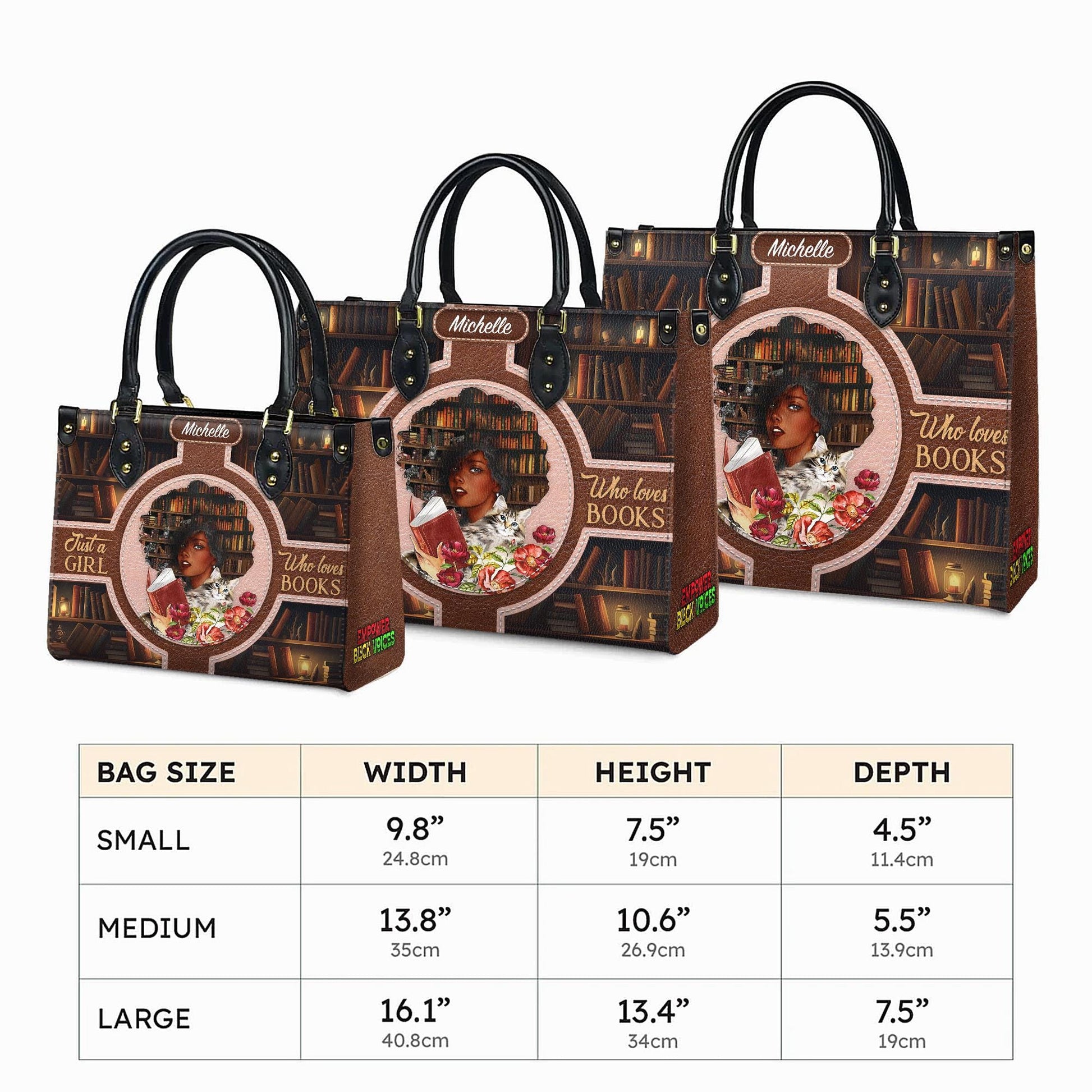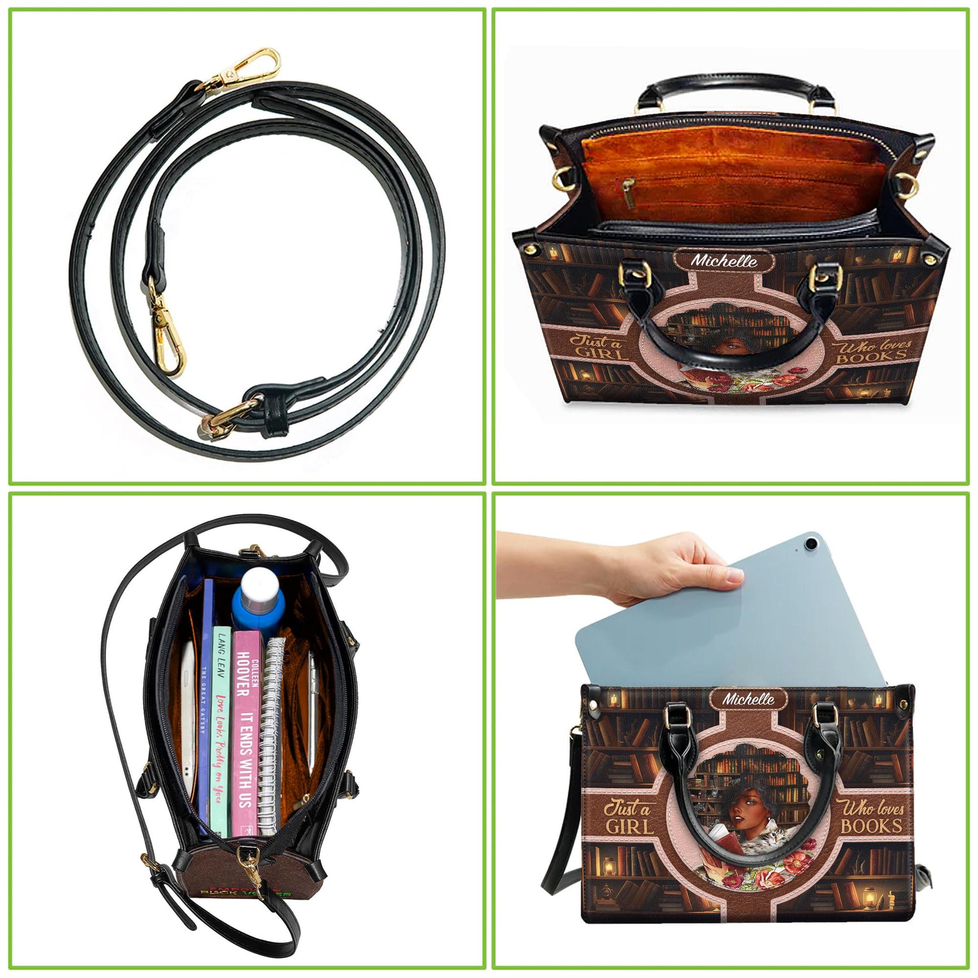 Custom Afro Girl Leather Handbag, Personalized Book Lover Purse with Cat and Flowers, Gift for Women Who Love Reading