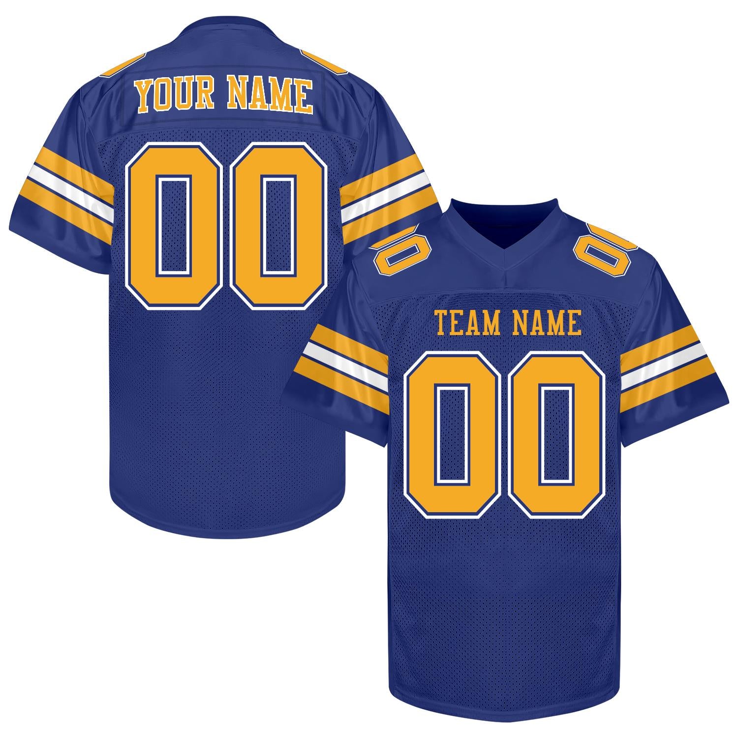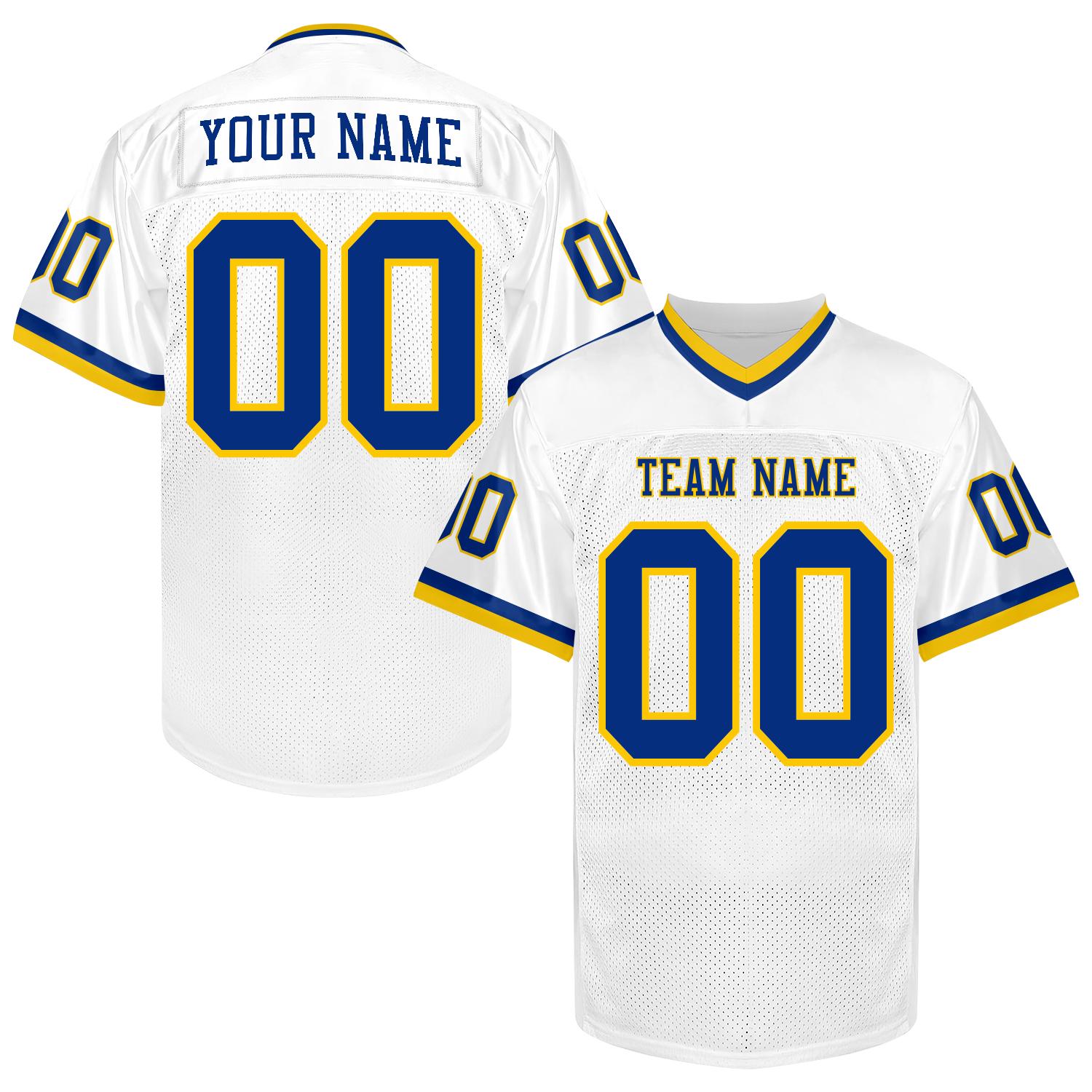 Custom Blue Gold Football Jersey Men Women Youth Kid, Football Shirt Printed Name Number and Logo, Practice Football Uniform for Sports Fan