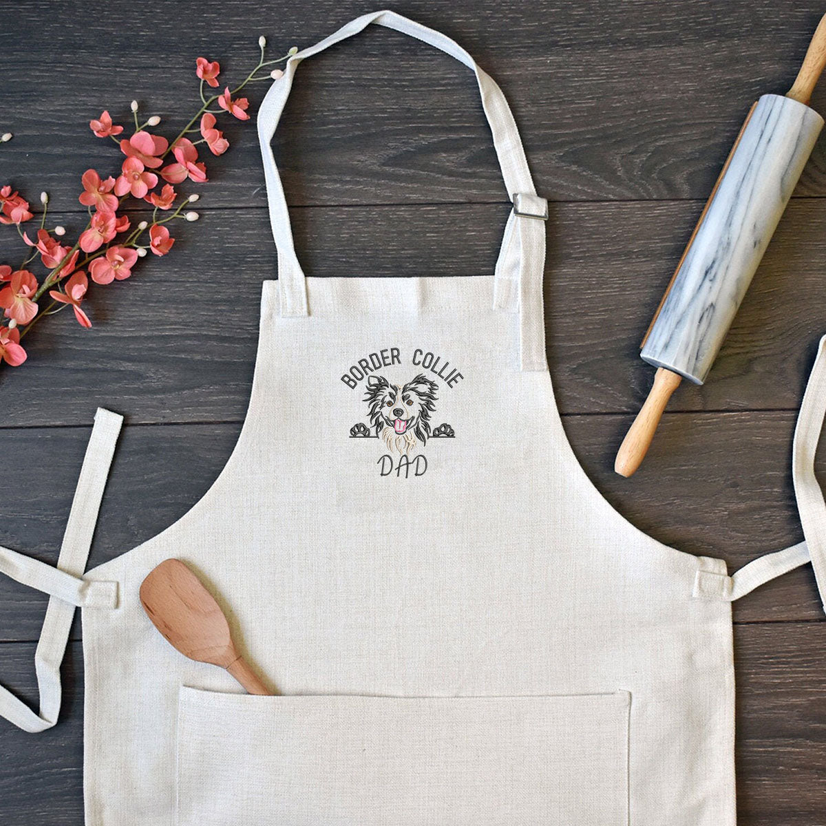 Custom Border Collie Dog Dad Embroidered Apron, Personalized Apron with Dog Name, Best Gifts For Boxer Lovers