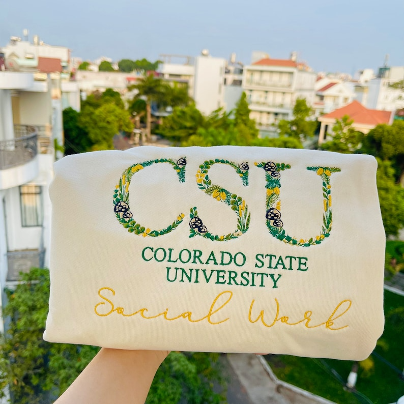 Custom College Floral Embroidered Sweatshirt, Floral Letter Embroidered T-Shirt, Flower College Shirt, High School Shirt, Graduation Gift