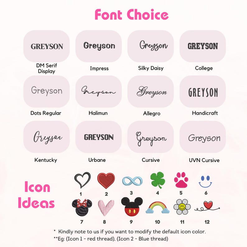 If you want to embroider any of these positions, please place an order and let us know in the Personalized box or via an Etsy message.