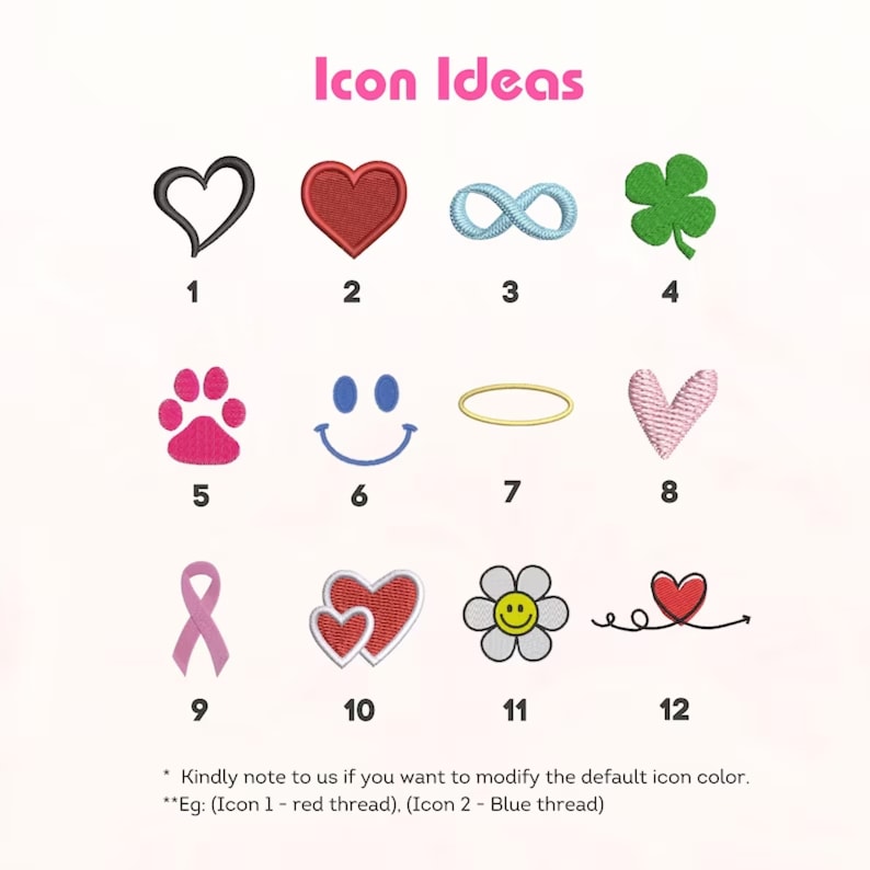If you want to embroider any of these positions, please place an order and let us know in the Personalized box or via an Etsy message.
